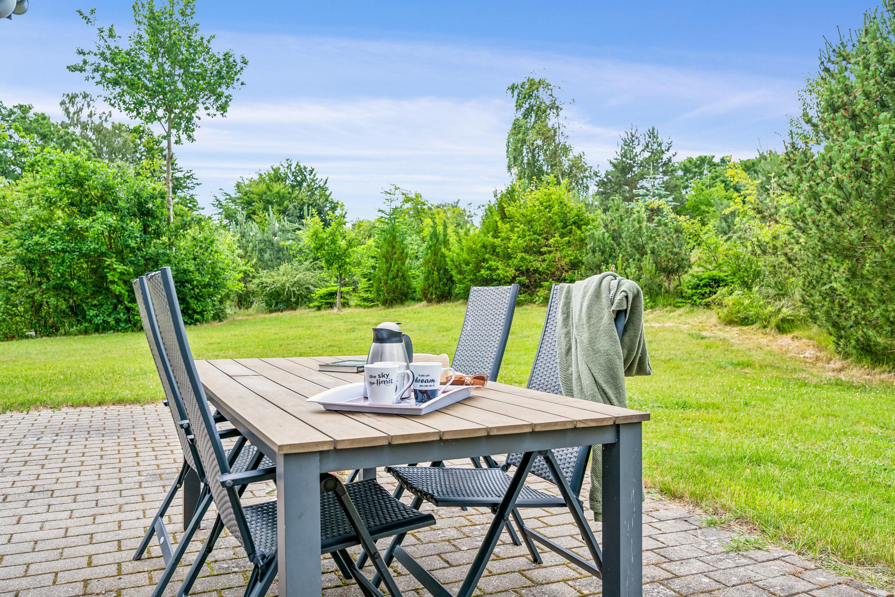 Huset er beliggende på en rigtig skøn beplantet grund med hyggekroge. Til huset hører der både overdækket og åben terrasse med havemøbler liggestole samt havegrill. Huset er beliggende 100 meter fra en flot natursti. Beliggenhed Vibæk Strand er et hyggeligt og børnevenligt område beliggende tæt på god sandstrand og gode indkøbsmuligheder i gåafstand fra huset og 5 min. kørsel fra Ebeltoft by med de mange attraktioner og seværdigheder. På havnen finder man Glasmuseet, som er førende inden for moderne glaskunst. Her finder man også flere gode spisesteder og forretninger, samt muligheder for at købe friskfangede fisk. I Ebeltoft finder man også Det Gamle Rådhus, hvor folk kommer fra nær og fjern for at blive gift. Her kan man også i sommerperioden kl. 20 og kl. 21 møde vægterne, som går syngende gennem gaderne på deres aftenpatrulje. Et kvarters kørsel fra huset finder man Ree-Park. Her er der mulighed for at komme på jeep safari og møde de vilde dyr helt tæt på. Ca. 1/2 times kørsel fra huset finder man henholdsvis Kattegatcentret i Grenaa, hvor man kan være med til at fodre de store hajer og Nordens største forlystelses