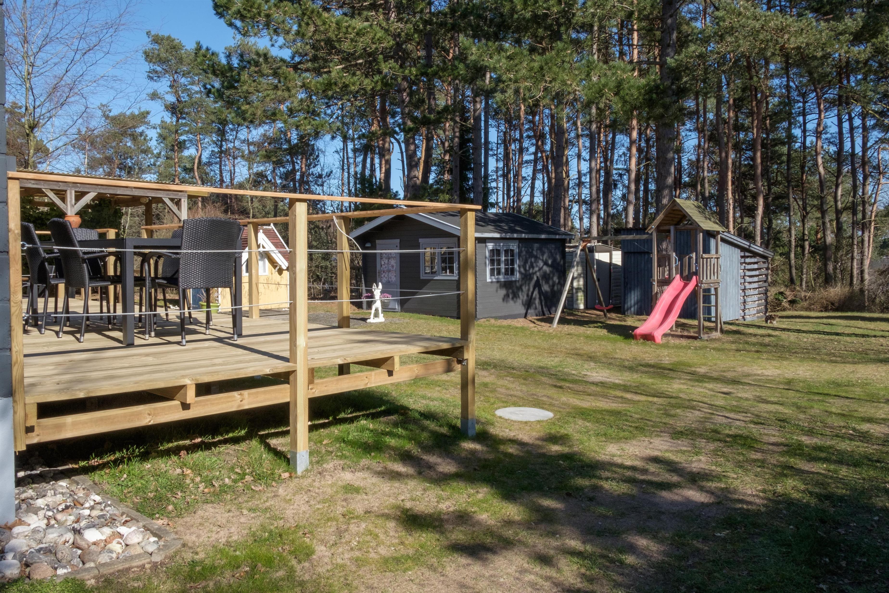 Hyggeligt feriehus i Boeslum Bakker nær badestrand og golf, med terrasse, legeredskaber og internet.