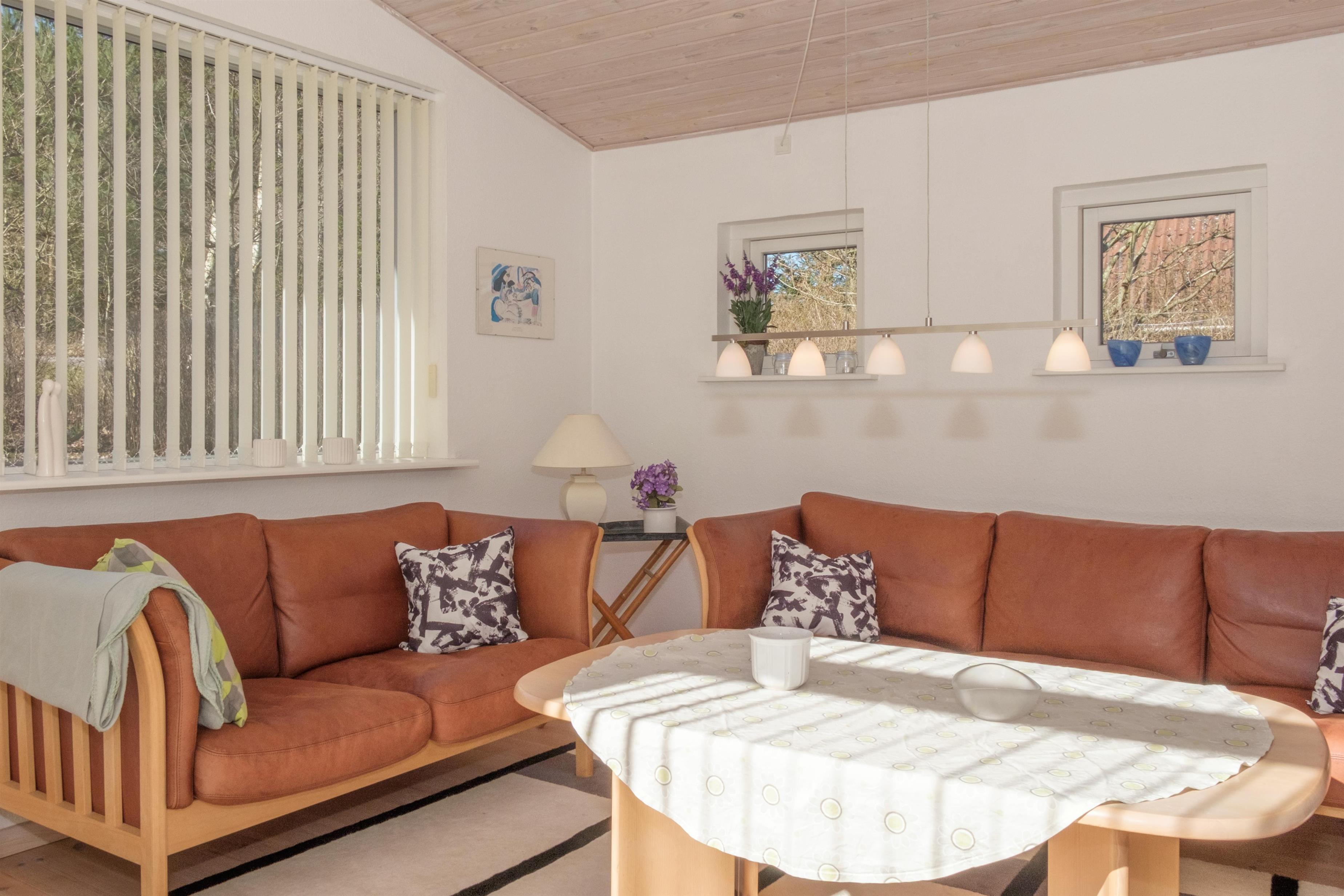 Huset fremstår lyst og indbydende med stor, velmøbleret stue med dejligt lysindfald og udgang til terrasse og have. Her er spiseplads til 6 personer, brændeovn, fjernsyn med danske (inkl. TV2) og tyske kanaler, DVD- og BluRay-afspiller, CD-afspiller og radio. I åben forbindelse med stuen ligger det nyere, funktionelle køkken med keramisk komfur, ovn og køle-/fryseskab. Huset råder over 3 soveværelser, 2 med dobbeltseng og 1 med køjeseng, i alt 5 sovepladser. Pænt badeværelse med bruseniche og gulvvarme. Praktisk og rummelig entré med klinkegulv. Der er internetadgang.