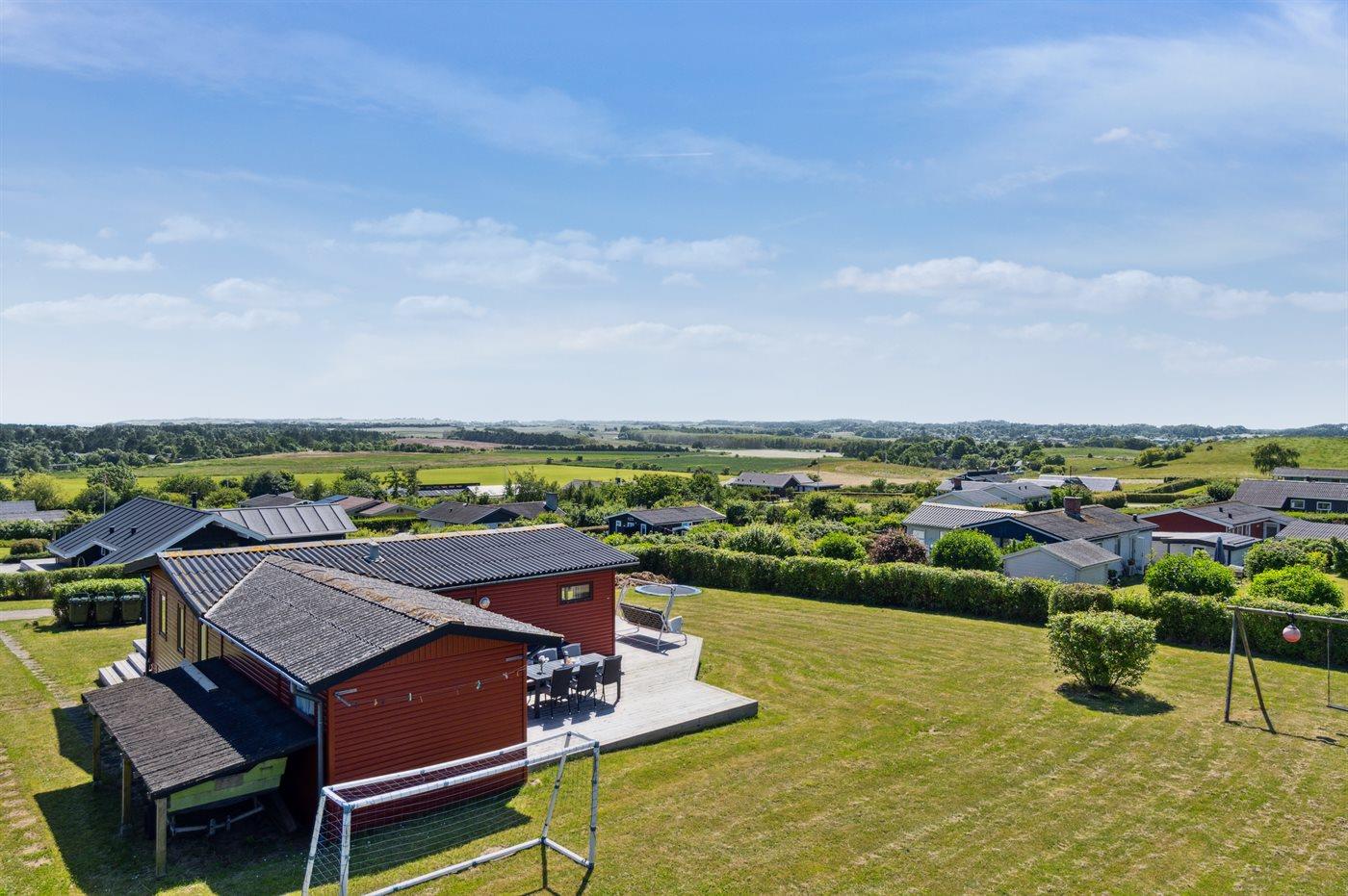 Højt i Dråbys bakker ligger dette hyggelige sommerhus med udsigt over området og vandet.
