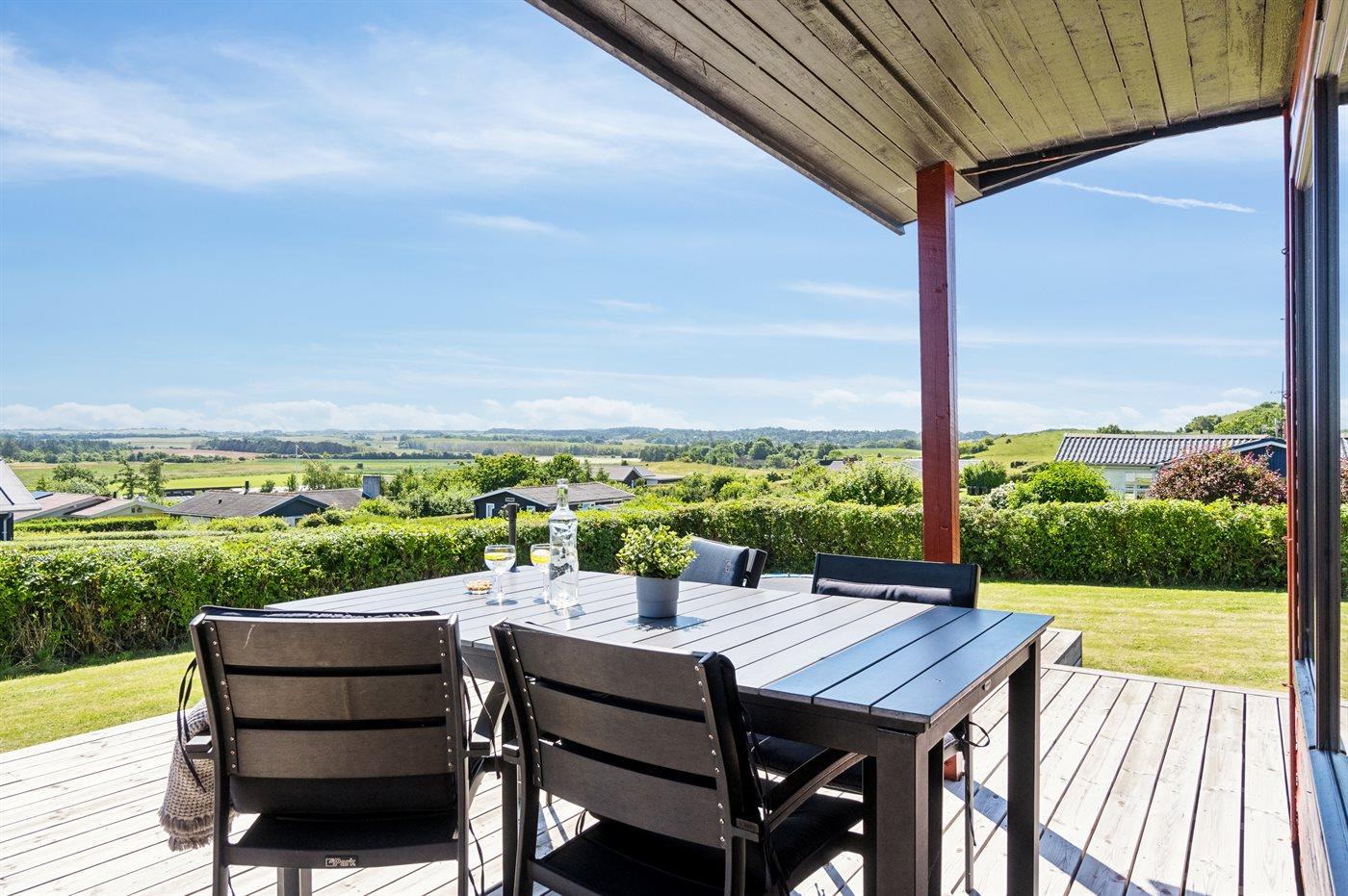 Hyggeligt sommerhus i Dråby med havudsigt, stor terrasse og plads til udendørs aktiviteter nær strand og Ebeltoft.