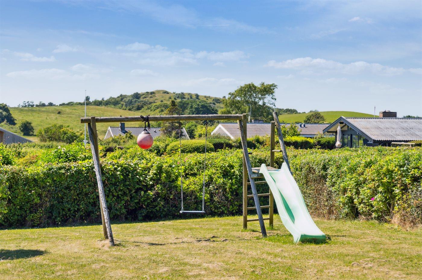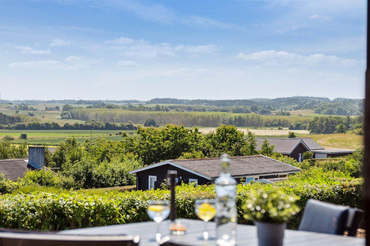 Foruden den skønne udsigt udmærker huset sig med sin store træterrasse og dejlige grund - med god plads til udendørs aktiviteter - herunder leg i legetårnet, på havens trampolin eller med boldspil omkring husets fodboldmål.