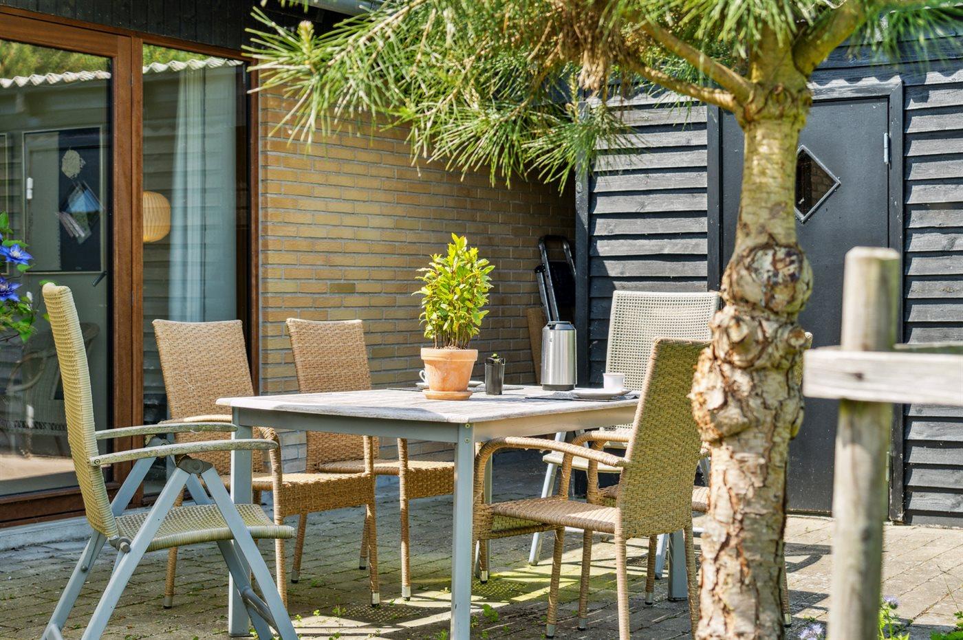 Ferieboligen er beliggende på en 1400 m² stor naturgrund. Der er 700 m til havet. Nærmeste forretning er beliggende i en afstand af 3000 m. Til ferieboligen hører åbent terrasseareal. Desuden er der overdækket terrasse. Fodboldmål. Der ligger en legeplads i en afstand af 1000 m. Grill til rådighed. Der er carport til rådighed. Parkering ved ferieboligen.