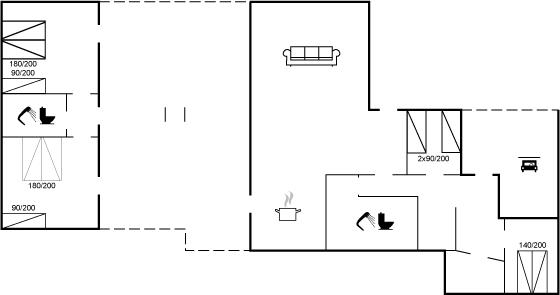 Der er i alt 4 soveværelser. Sovepladserne fordeler sig på: 6 sovepladser i dobbeltsenge. 2 sovepladser i enkeltsenge. 2 sovepladser på madrasser.