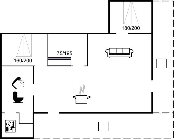Der er i alt 3 soveværelser. Sovepladserne fordeler sig på: 4 sovepladser i dobbeltsenge. 2 sovepladser i køjeseng. 2 sovepladser på madrasser. 2 af disse sovepladser befinder sig på husets hems. Derudover er der 1 stk. barneseng.