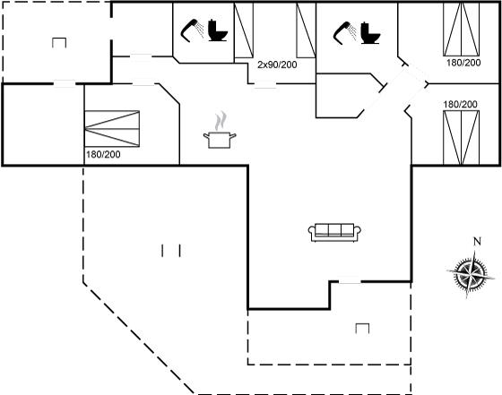 Der er i alt 4 soveværelser. Sovepladserne fordeler sig på: 6 sovepladser i dobbeltsenge. 2 sovepladser i enkeltsenge.