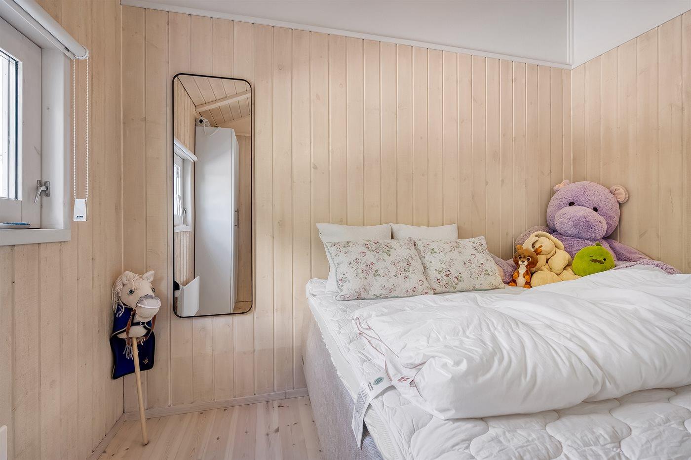 Der er i alt 4 soveværelser. Sovepladserne fordeler sig på: 4 sovepladser i dobbeltsenge. 2 sovepladser i enkeltsenge. 2 sovepladser i køjeseng.