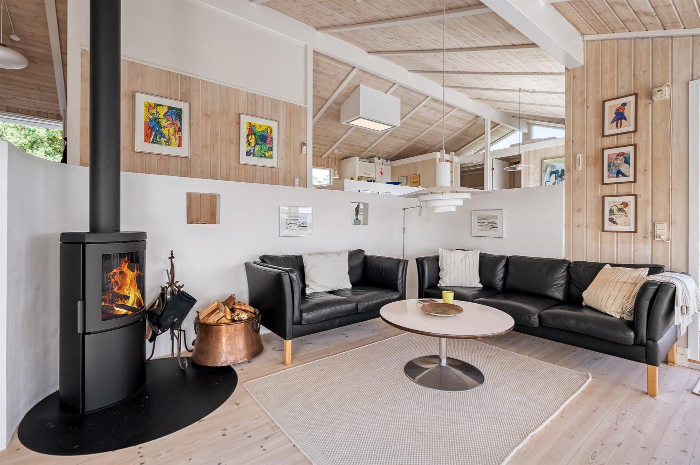Sommerhuset er en fredfyldt oase. Den rummelige stue med brændeovn er ideel til hyggelige aftener, mens den store terrasse er perfekt til afslapning i solen.