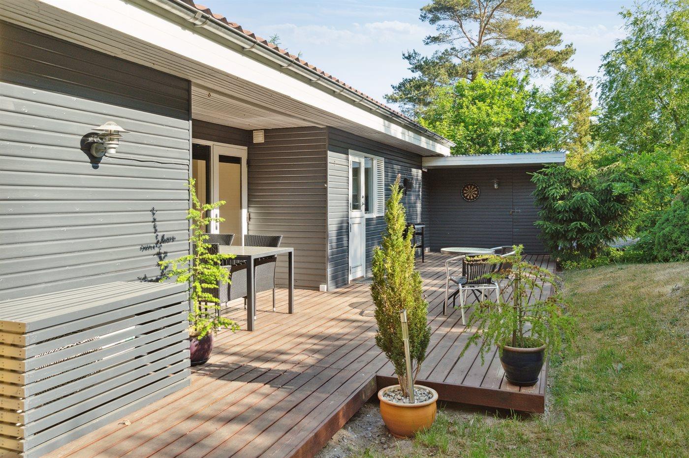 Ferieboligen er beliggende på en 2800 m² stor naturgrund. Der er 1500 m til havet. Nærmeste forretning er beliggende i en afstand af 2000 m. Til ferieboligen hører 100 m² terrasseareal. Desuden er der 5 m² overdækket terrasse. Fodboldmål. Grill til rådighed. Parkering ved ferieboligen.