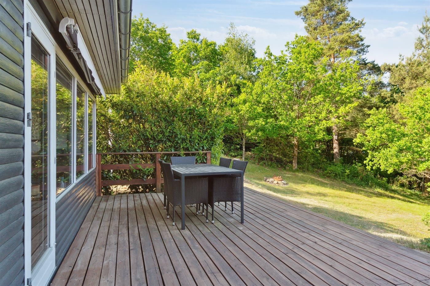 På en meget stor og kuperet grund med egen fodboldbane ligger dette dejlige og rummelige sommerhus i et roligt og naturskønt område midt i Nationalpark Mols Bjerge.