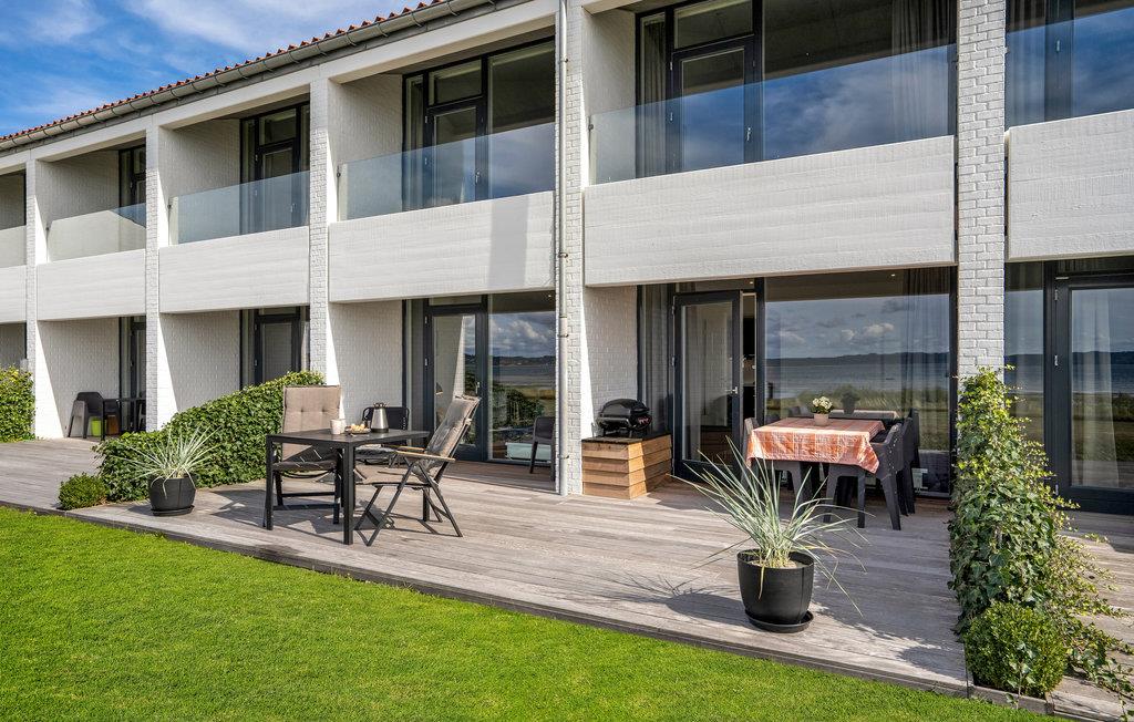Velkommen til denne moderne lejlighed, hvor I får et herligt hjem til ferien. Boligen er komfortabelt indrettet og velegnet til en familie eller to vennepar. Her får I en fin lille oase, hvor I kan slappe af mellem jeres ture og sammensætte lækre middage efter en dag på farten. Nyd solen over en kop morgenkaffe på den flotte terrasse, som ligger lige ud til vandet. Senere på dagen er det også et dejligt sted at dække op til jeres grillmiddag.