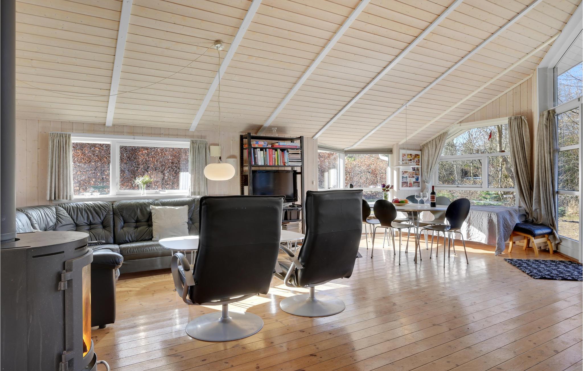 Velkommen til dette attraktive feriehus, der venter sine gæster i et smukt område. Med 3 soveværelser kan huset rumme op til 6 gæster. Derudover er 2 kæledyr velkomne her. Sæt jer godt til rette ved pejsen i stuen og slap af efter en aktiv dag. Der kommer meget lys ind i huset gennem den store vinduesfront, og I har en smuk udsigt udad. Et boblebad på badeværelset byder på ekstra afslapning.