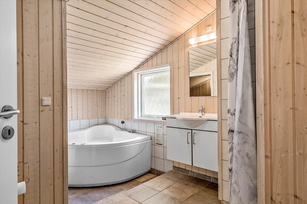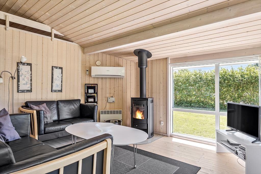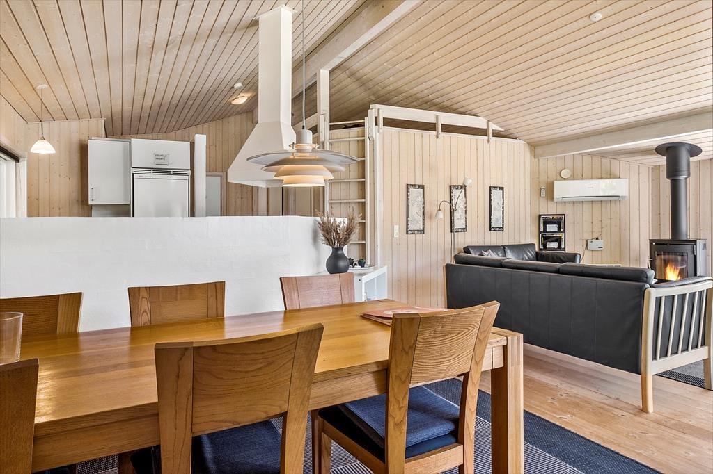 Dette moderne og skønne sommerhus rummer alt, hvad hjertet kan begære indenfor komfort og velvære. Huset byder, ud over stort set alt hvad den kræsne sommerhusgæst forventer, på et lækkert spa og en dejlig sauna i det flotte badeværelse. I stuen kan man nyde det dejlige lysindfald og varmen fra brændeovnen. Her er plads til en familie på op til seks personer, og med både seng og stol til de yngste og gulvvarme i mange af rummene, er sommerhuset meget børnevenligt indrettet. De lidt større børn vil elske at kravle op på hemsen, hvor de kan slappe af og hygge sig i fred og ro på madrasserne. En uge eller to i et hus som dette, er hvad den travle familie fortjener for at slappe helt af, hygge sig, være sammen og vende hjem til hverdagen med en god portion fornyet energi.