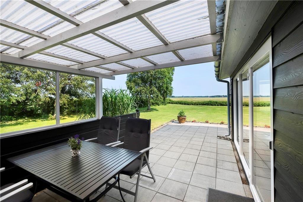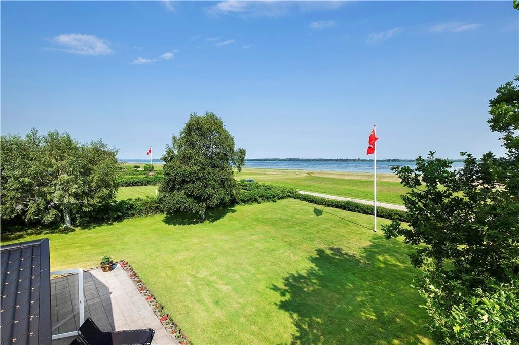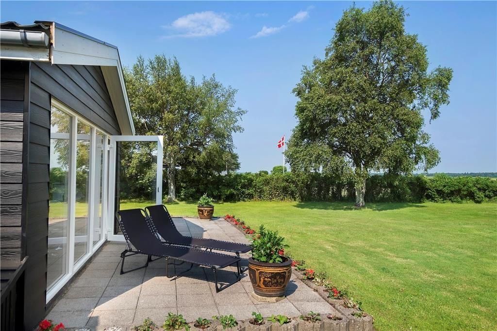På solskinsdage er det oplagt at åbne havedørene på vid gab og invitere sommeren indenfor. Alternativt kan I flytte driverlivet ud på terrassen, som også er et godt sted at nyde fjordudsigten og følge med i skibssejladsen til og fra Aalborg –alt fra små både til krydstogtskibe og smukke sejlskibe passerer forbi her. Terrassen er for øvrigt delvist overdækket, så I kan finde ly for brisen og en forbigående regnbyge, og havens græsplæne er stor med god plads til leg og boldspil.