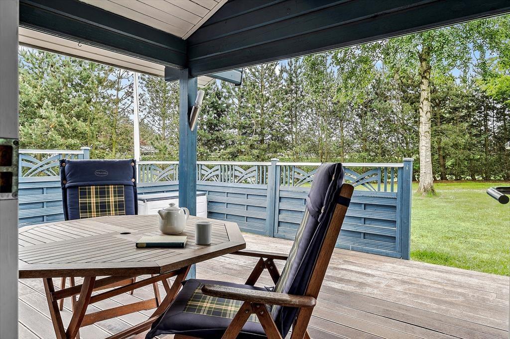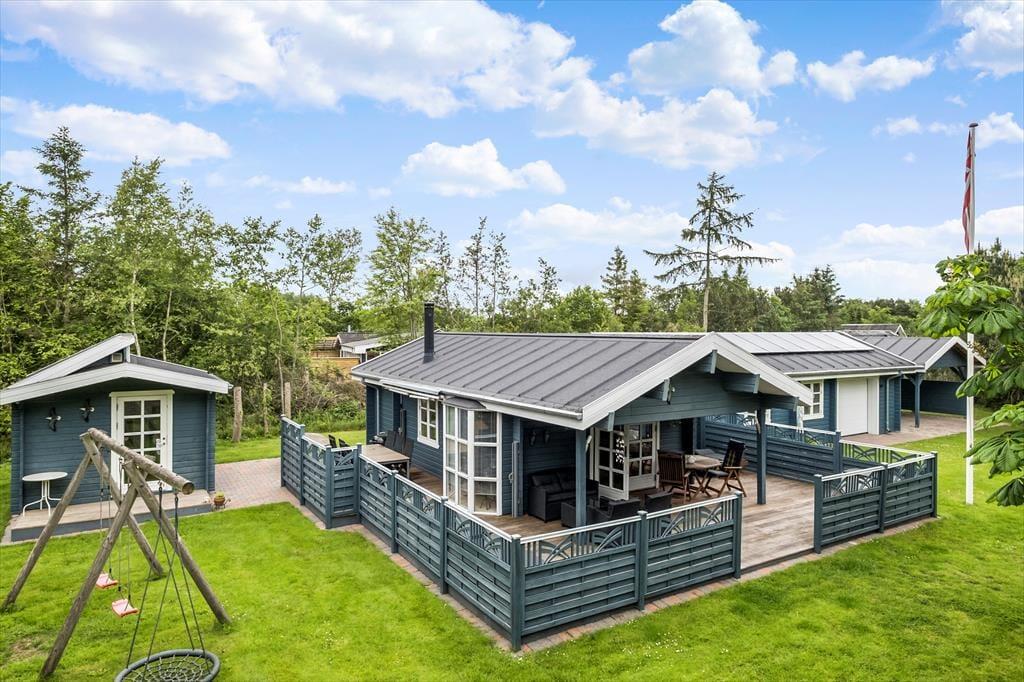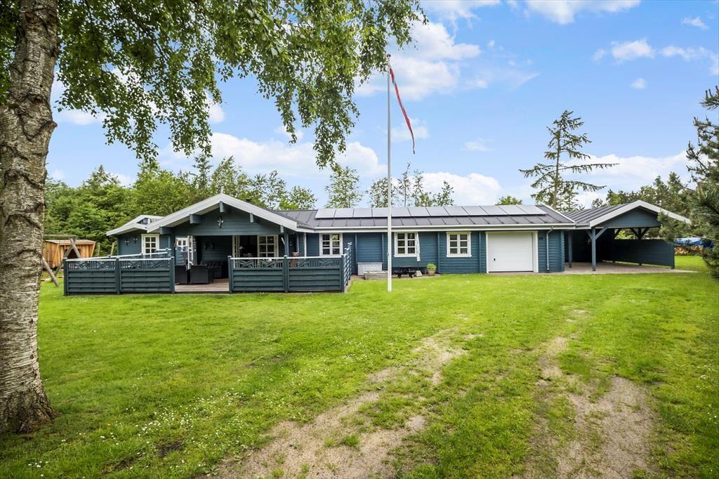 Huset ligger på en hyggelig havegrund for enden af Hybenvej, hvilket betyder, at I ikke bliver generet af trafiklarm fra forbipasserende. Der er store åbne og overdækkede terrasser, som giver masser af plads til rendyrket råhygge med grill, kortspil og hvad nu ellers, man kan finde på, når ferien skal nydes.
