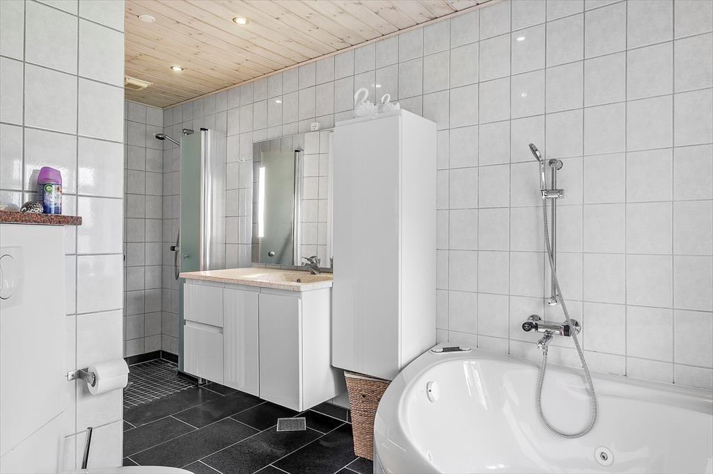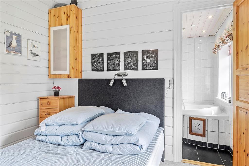 Huset byder på stort køkken-spisestue og stue med et helt fantastisk lysindfald takket være en større alkove. Desuden er der et badeværelse med sauna og spa og et gæstebadeværelse. Husets sovepladser fordeler sig på 3 rum og har alle dobbeltsenge og så er der dobbeltseng i det nybyggede og hyggelige anneks, der også har en hems som tumleplads til børn.
