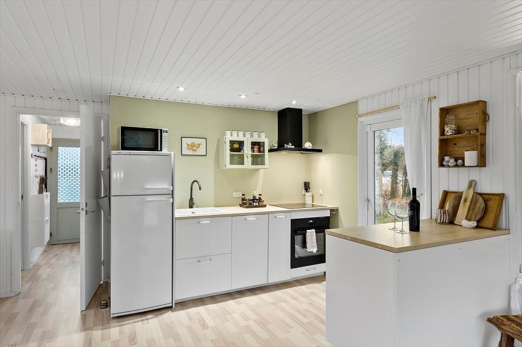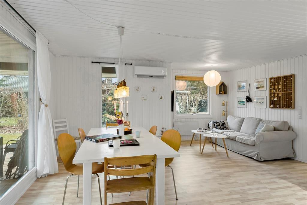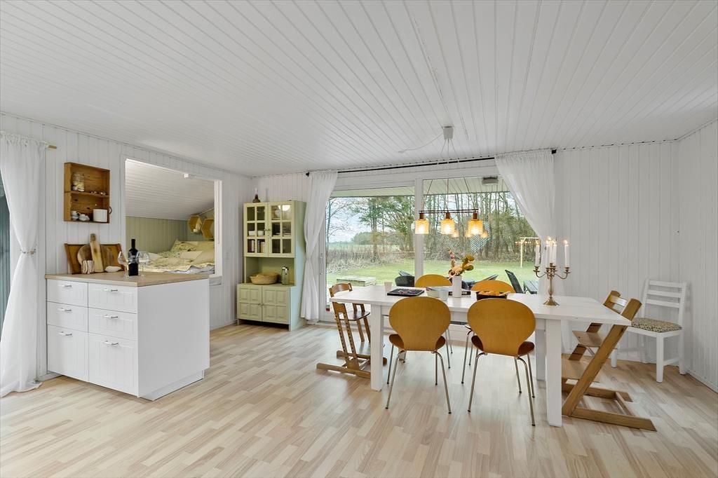 Sommerhuset på Hybenvej 39 er indrettet med fokus på hygge og komfort. De lyse rum, de fine detaljer og de nøje udvalgte møbler skaber en rolig og behagelig atmosfære, hvor du straks vil føle dig hjemme. Den åbne forbindelse mellem køkken, spiseplads og stue gør det nemt at være sammen – hvad enten der bliver lavet mad, spillet brætspil eller hygge med en god bog . Vinduespartierne lukker masser af lys ind og giver en skøn udsigt til den grønne have, der omkranser huset. Med plads til hele familien – og de små detaljer, der skaber den helt rigtige feriestemning – kan du glæde dig til nogle uforglemmelige stunder.