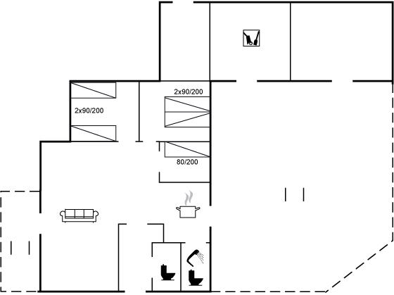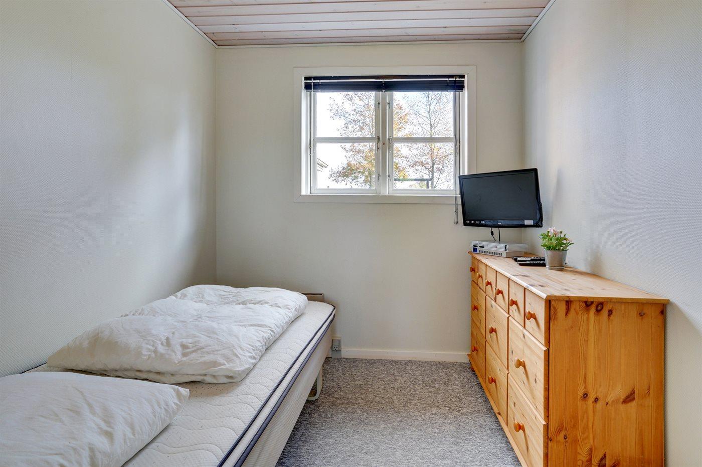 Der er i alt 3 soveværelser. Sovepladserne fordeler sig på: 2 sovepladser i dobbeltseng. 3 sovepladser i enkeltsenge. Derudover er der 1 stk. barneseng.