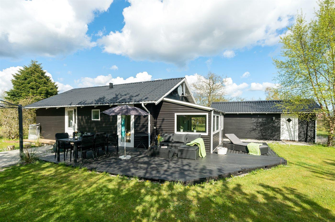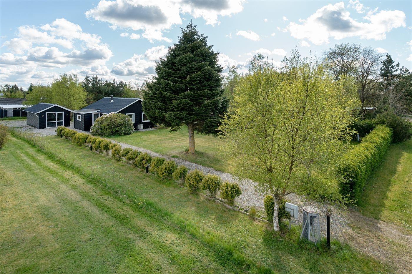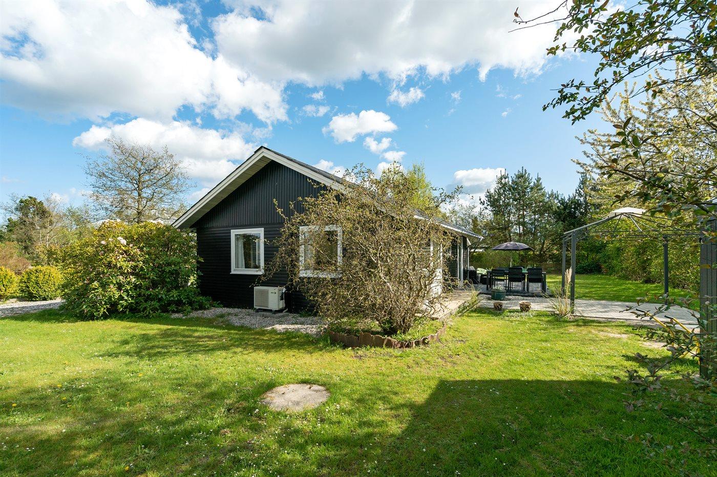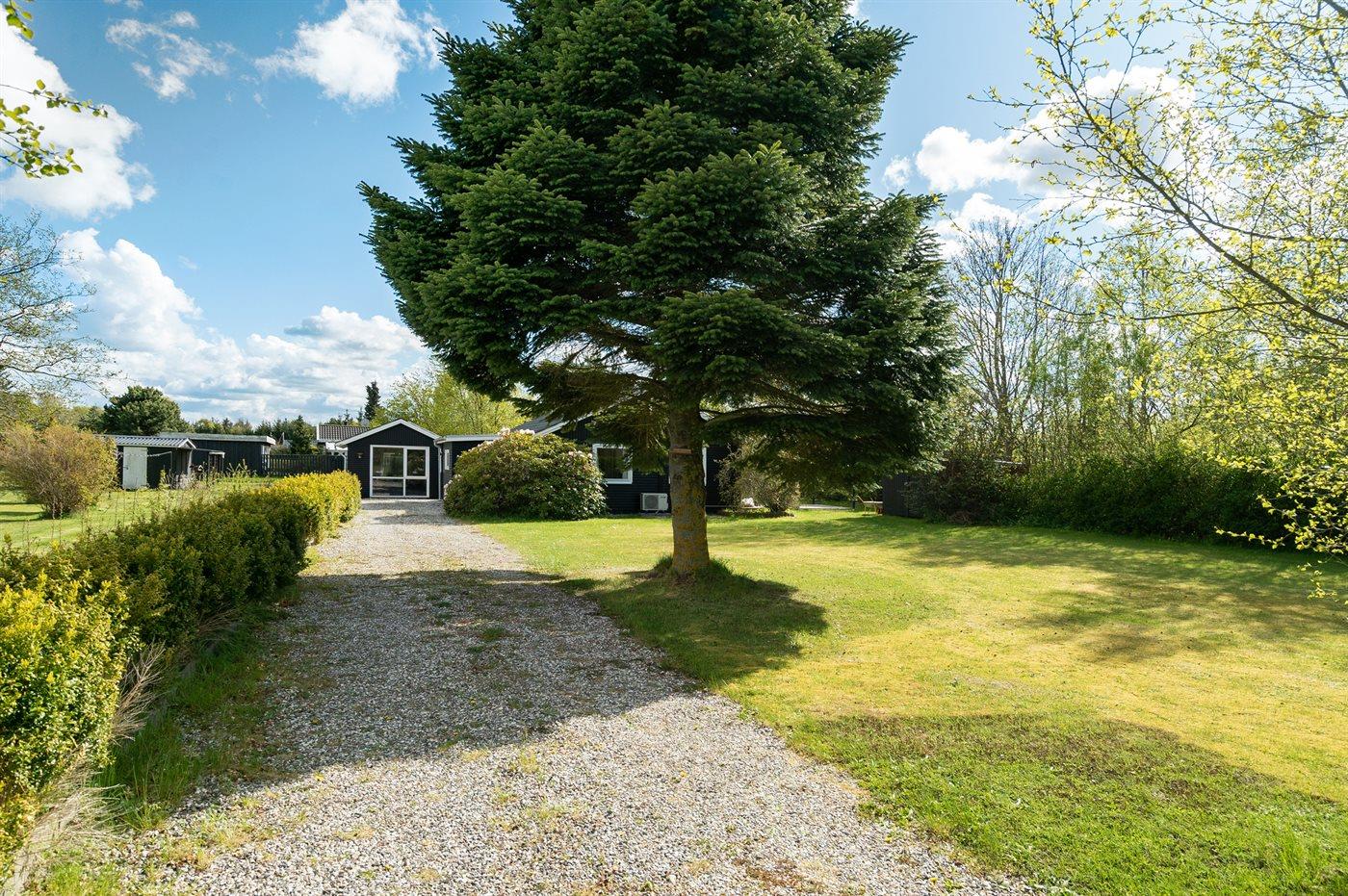 Ferieboligen er beliggende på en 1250 m² stor havegrund. Der er 1500 m til havet. Der er 500 m til fjorden. Nærmeste forretning er beliggende i en afstand af 800 m. Til ferieboligen hører 60 m² terrasseareal. Ligeledes er der adgang til udestue. Der er redskabsrum. Trampolin. Grill til rådighed. Parkering ved ferieboligen.