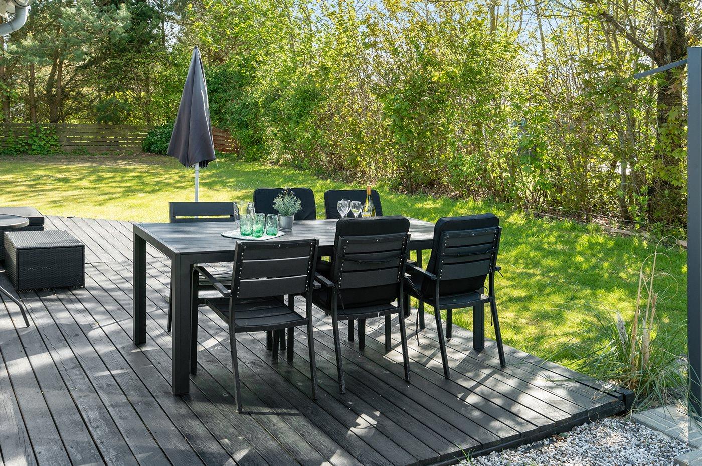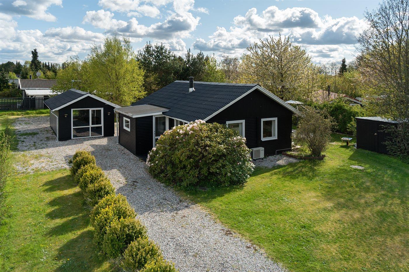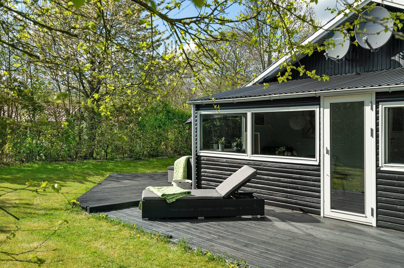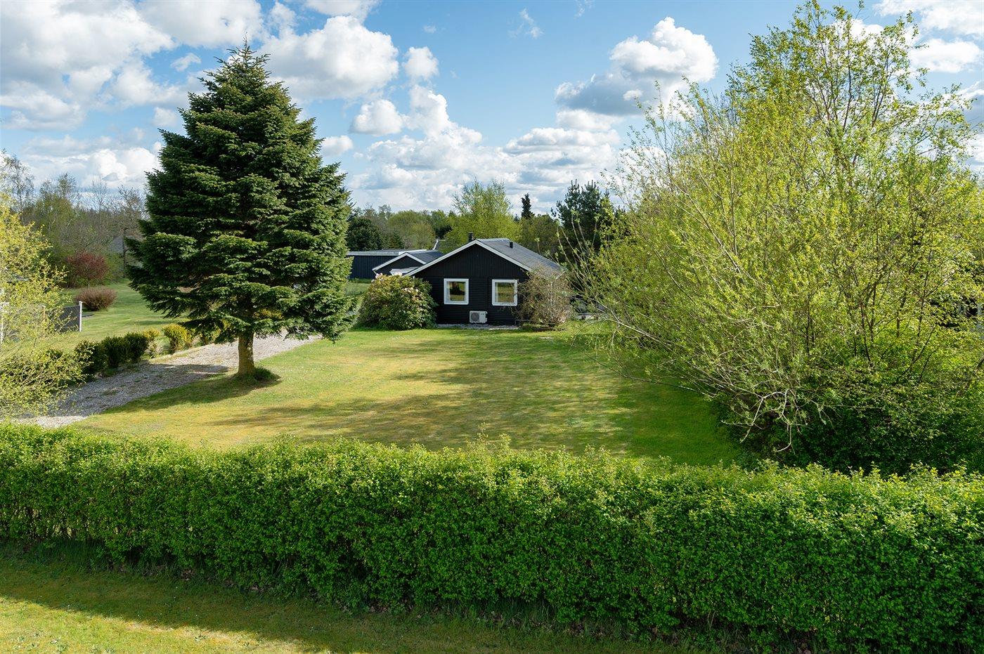 Ferieboligen er beliggende på en 1250 m² stor havegrund. Der er 1500 m til havet. Der er 500 m til fjorden. Nærmeste forretning er beliggende i en afstand af 800 m. Til ferieboligen hører 60 m² terrasseareal. Ligeledes er der adgang til udestue. Der er redskabsrum. Trampolin. Grill til rådighed. Parkering ved ferieboligen.