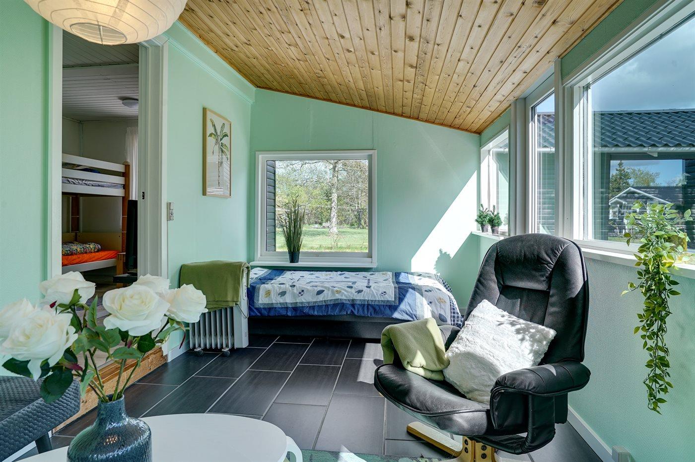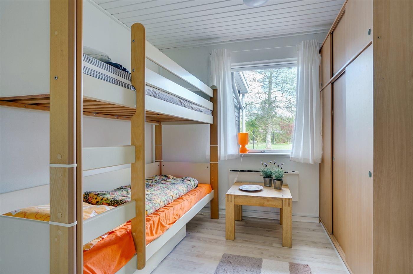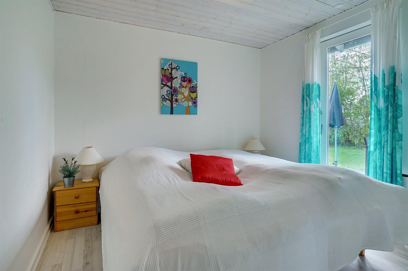 Der er i alt 2 soveværelser. Sovepladserne fordeler sig på: 2 sovepladser i dobbeltseng. 2 sovepladser i køjeseng. 2 sovepladser i sovesofa (dobbelt). Derudover er der 1 stk. barneseng.