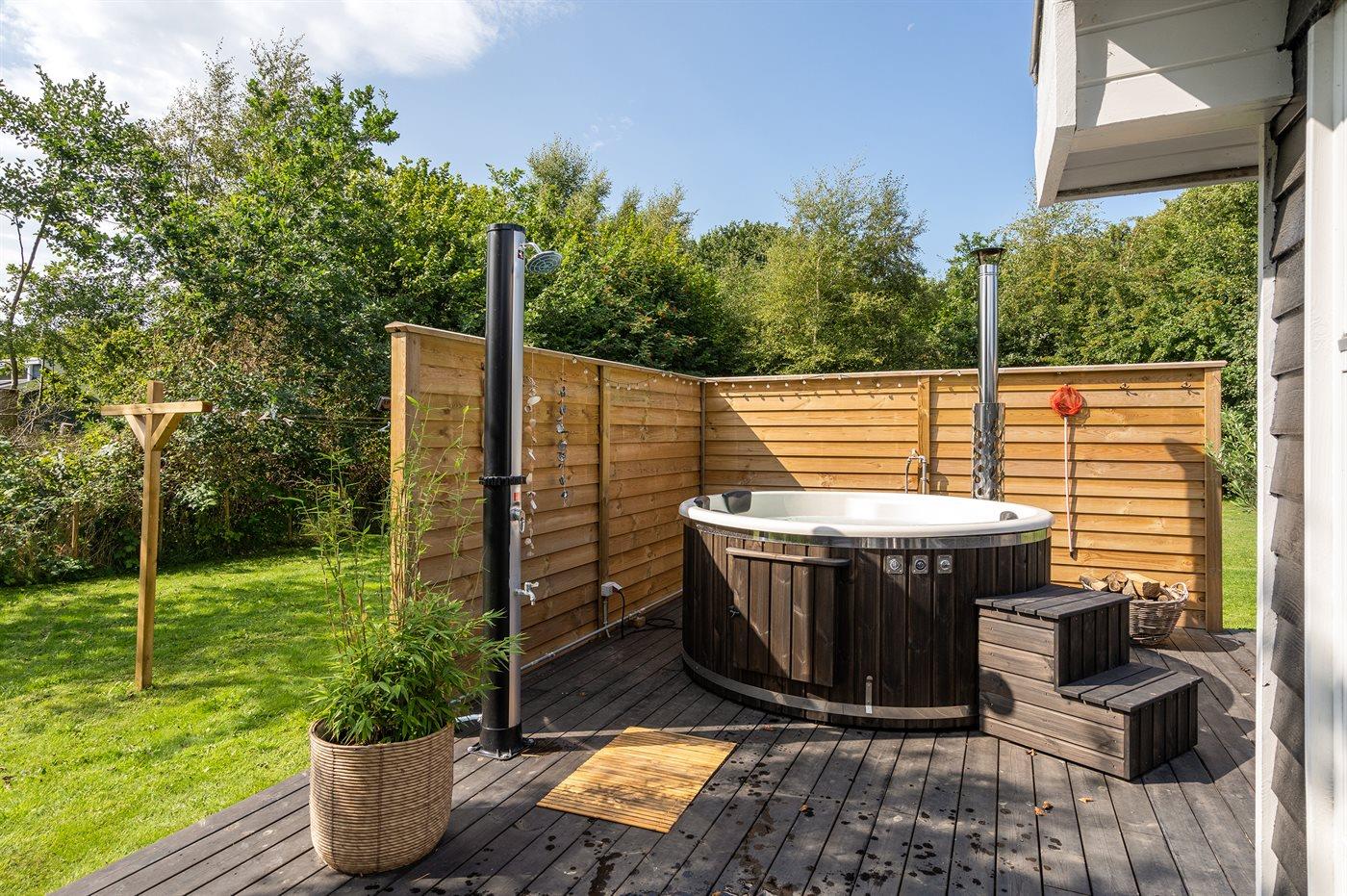 Der er mulighed for afslapning i det udendørs vildmarkskar til 6 personer.