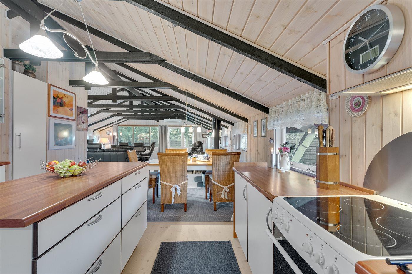 Køkkenet er udstyret med 1 køleskab. Der er 4 keramiske kogeplader, varmluftovn samt opvaskemaskine.
