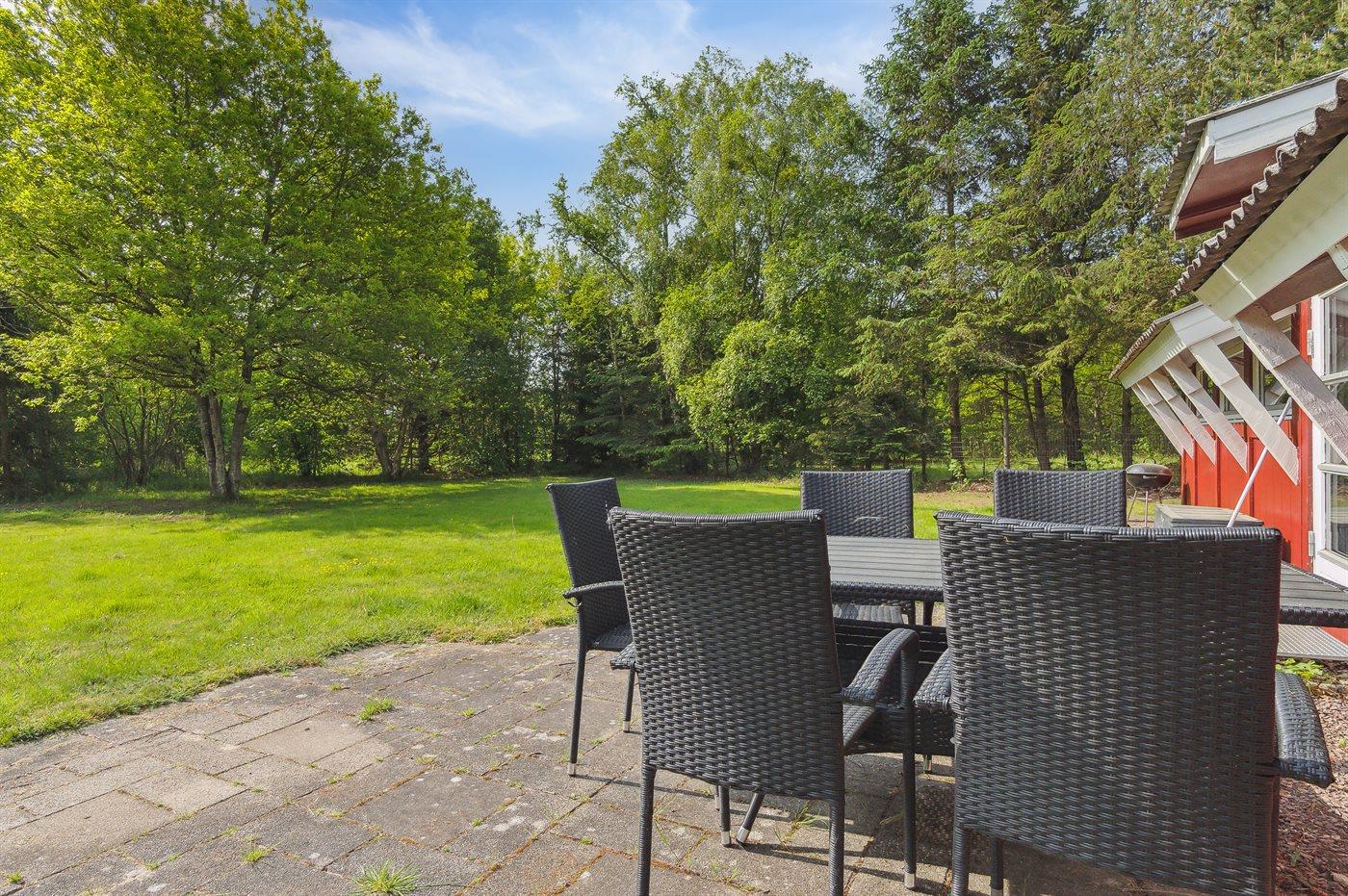 Ferieboligen er beliggende på en 1257 m² stor naturgrund. Grunden er indhegnet. Der er 250 m til havet. Der er 800 m til fjorden. Nærmeste forretning er beliggende i en afstand af 480 m. Der er en golfbane i en afstand af 2750 m. Til ferieboligen hører åbent terrasseareal. Grill til rådighed. Parkering ved ferieboligen.