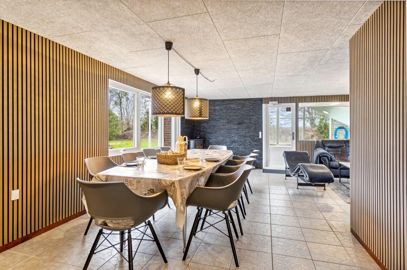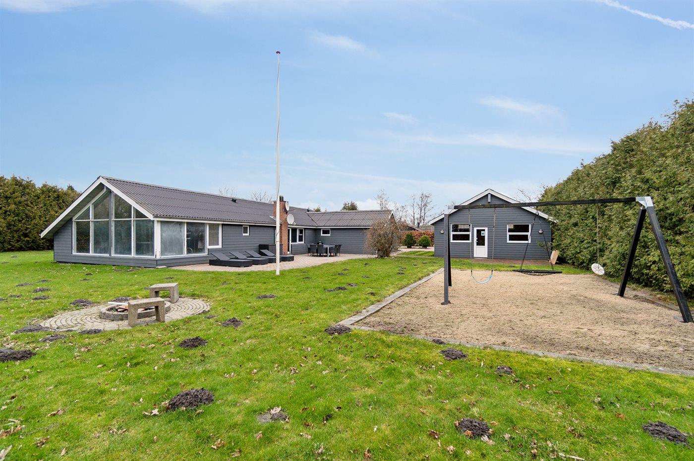Dejligt sommerhus i Egense med indendørs pool, spa, aktivitetsrum og stor naturgrund nær havet.