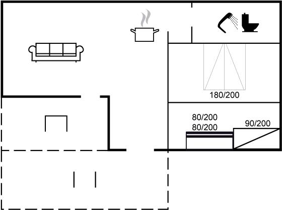 Der er i alt 2 soveværelser. Sovepladserne fordeler sig på: 2 sovepladser i dobbeltseng. 1 soveplads i enkeltseng. 2 sovepladser i køjeseng.