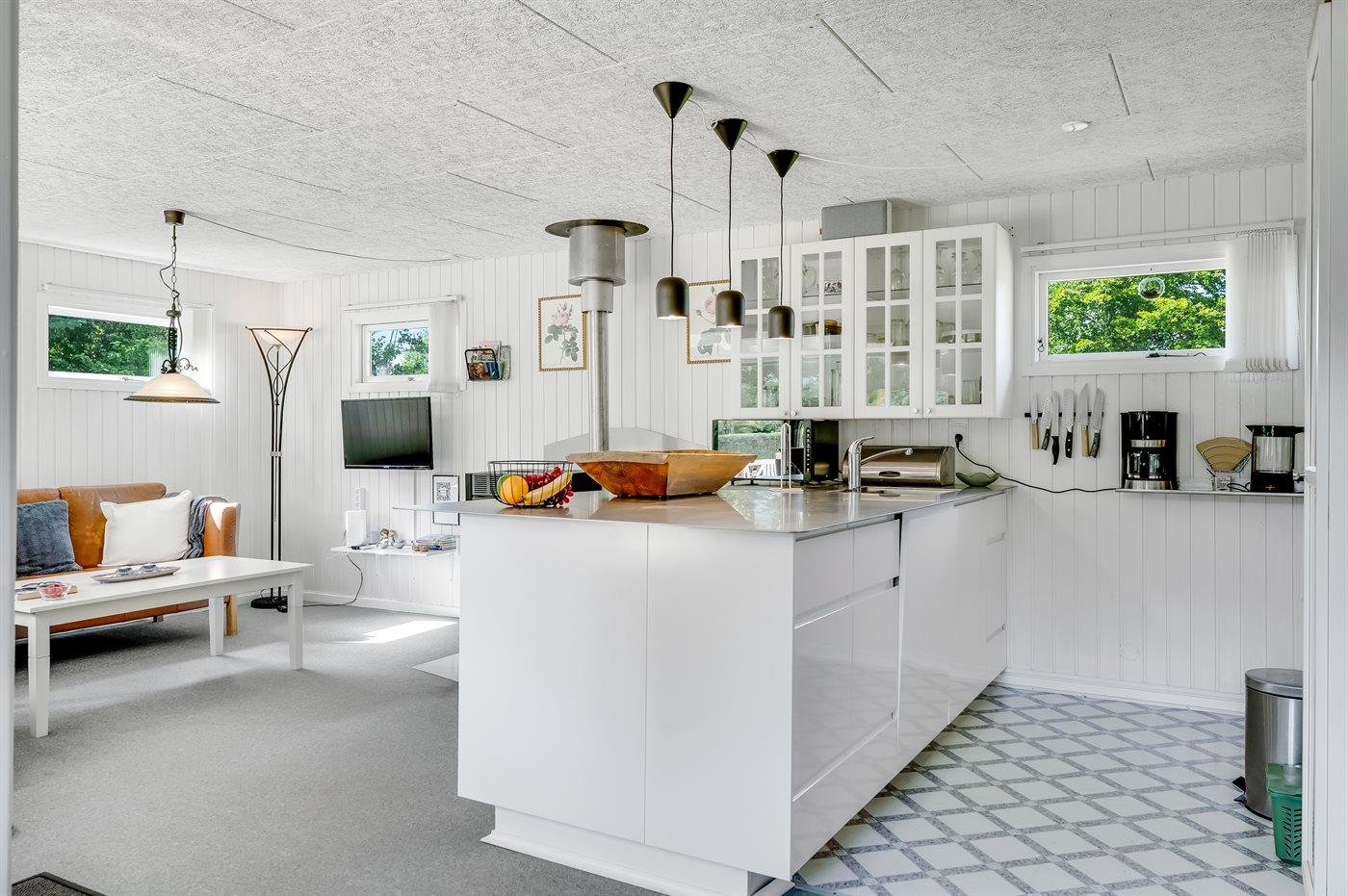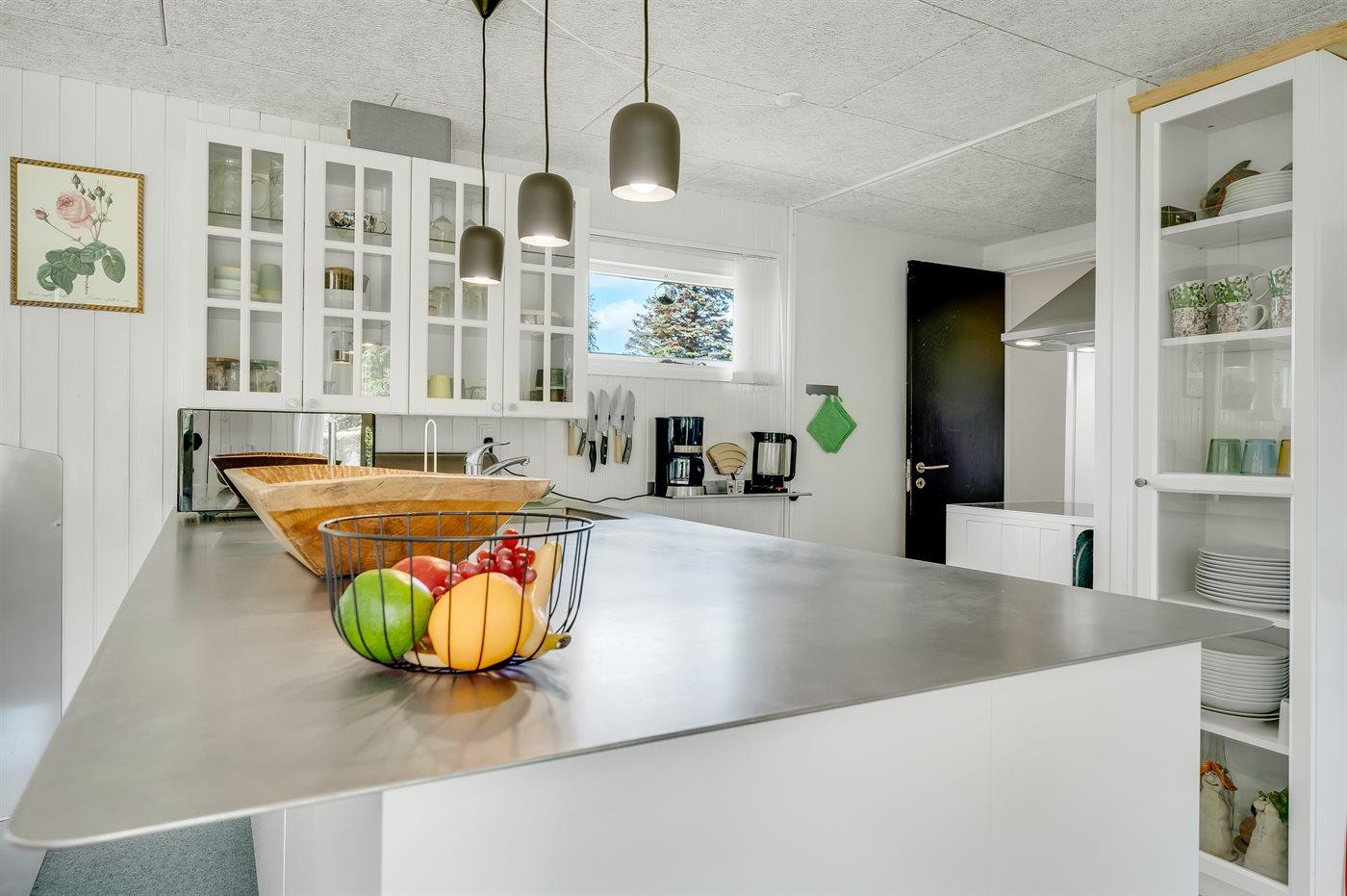 Køkkenet er udstyret med 1 køleskab. Der er 4 keramiske kogeplader, varmluftovn, mikrobølgeovn samt opvaskemaskine.