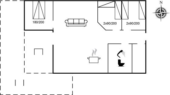Der er i alt 3 soveværelser. Sovepladserne fordeler sig på: 2 sovepladser i dobbeltseng. 4 sovepladser i enkeltsenge. Derudover er der 1 stk. barneseng.