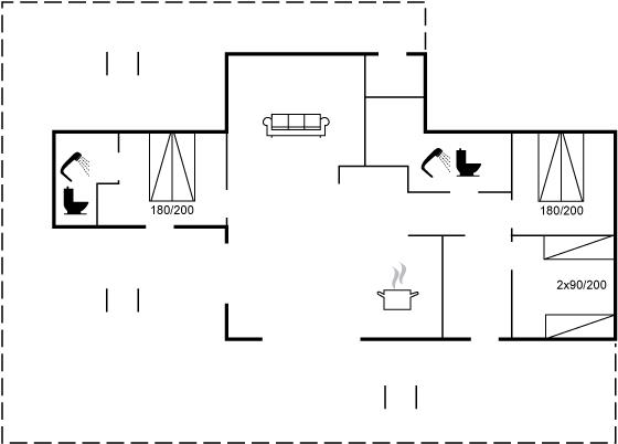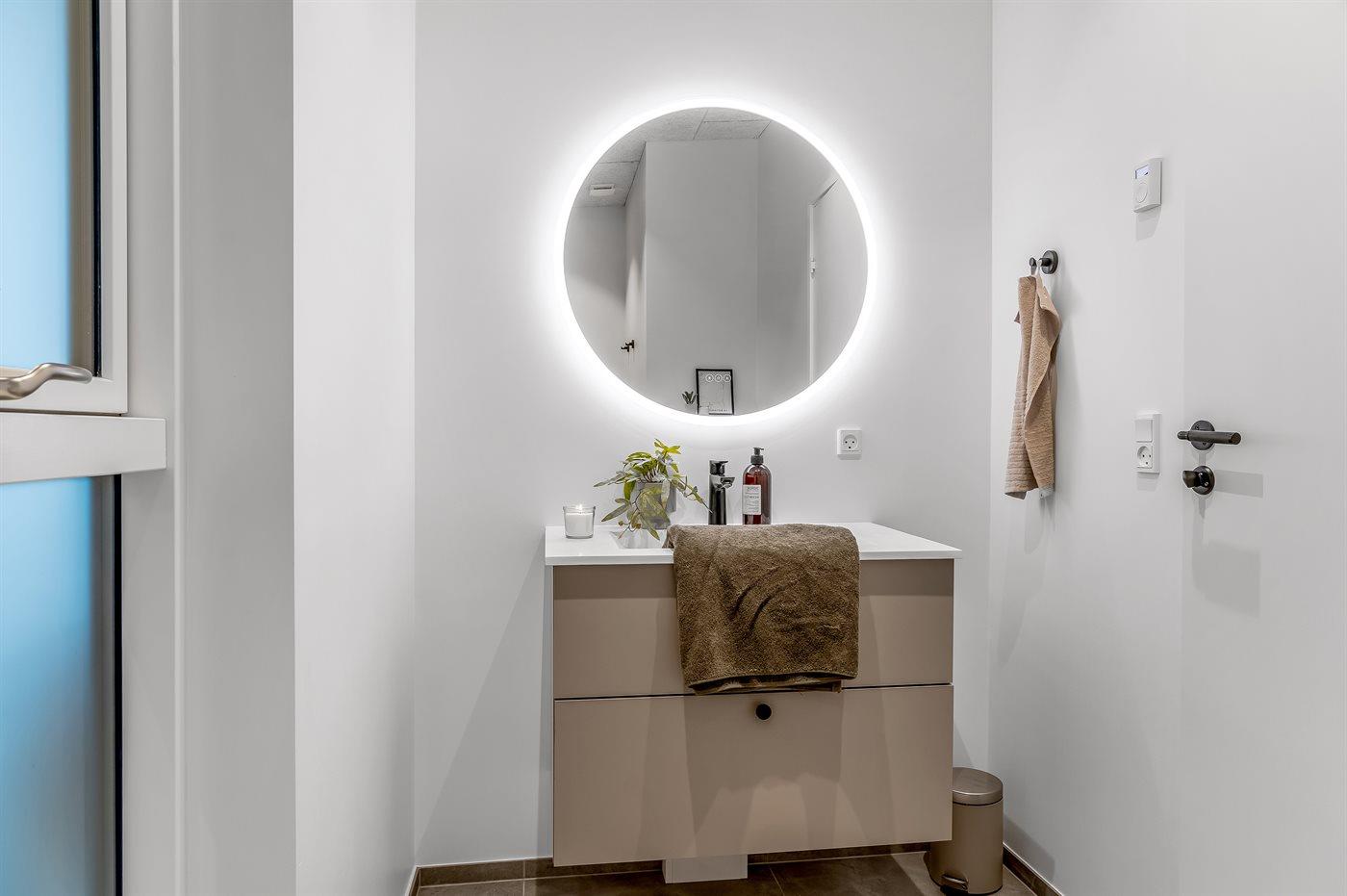Der er 2 badeværelser med bruseniche og 2 toiletter. Der er gulvvarme på 2 badeværelser.