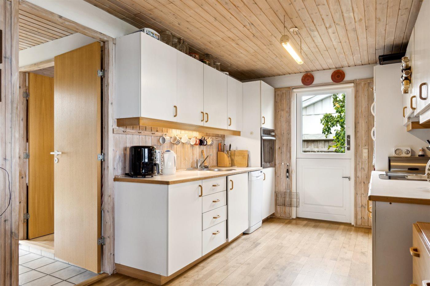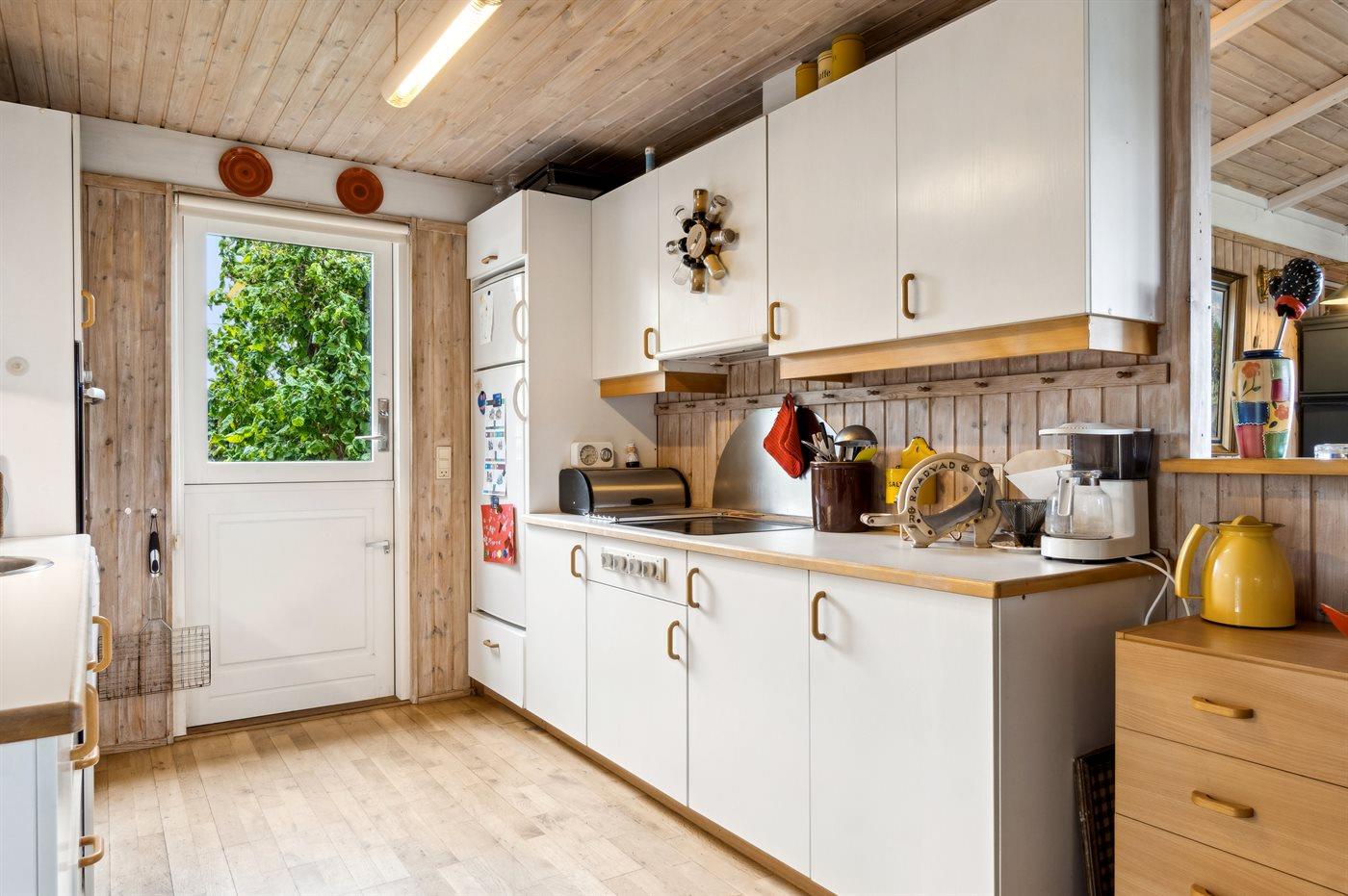 Køkkenet er udstyret med 1 køleskab. Der er 4 keramiske kogeplader, varmluftovn, mikrobølgeovn samt opvaskemaskine.
