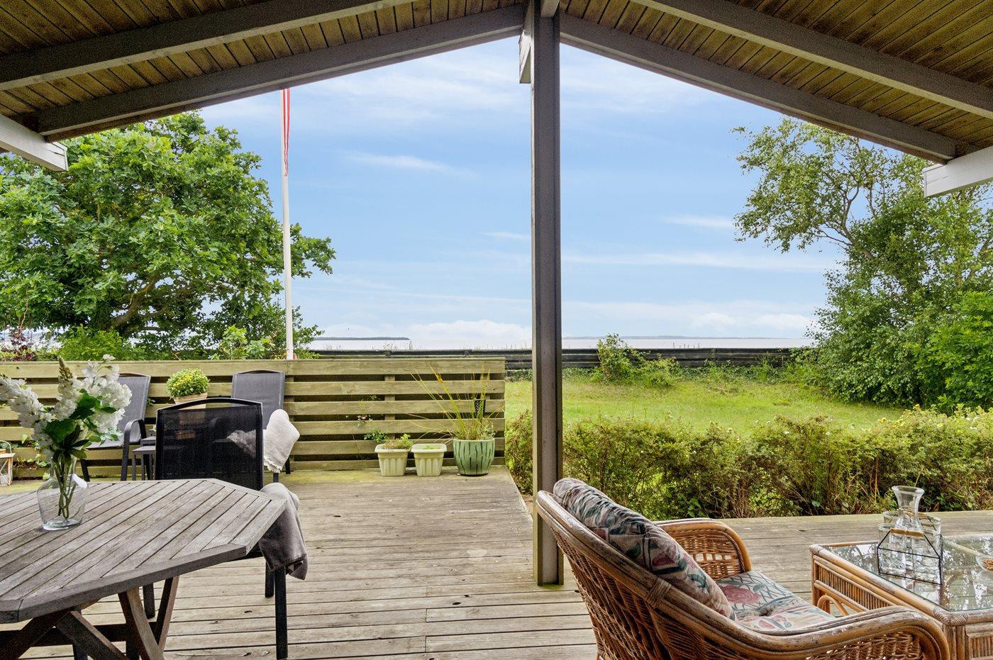 Fra sommerhuset er der tæt på 180 graders panoramaudsigt over vandet og det er svært, at løsrive sig fra dette syn. Udsigten er ganske speciel, da også Ebeltoft og det smukke landskab kan betragtes. Dette giver en meget komplet og spændende udsigt. Dette gælder i højeste grad fra den hyggelig terrasse, som findes foran huset direkte imod vandet og her er altid mulighed at finde en plads med læ. Også inde fra sommerhuset kan udsigten nydes.