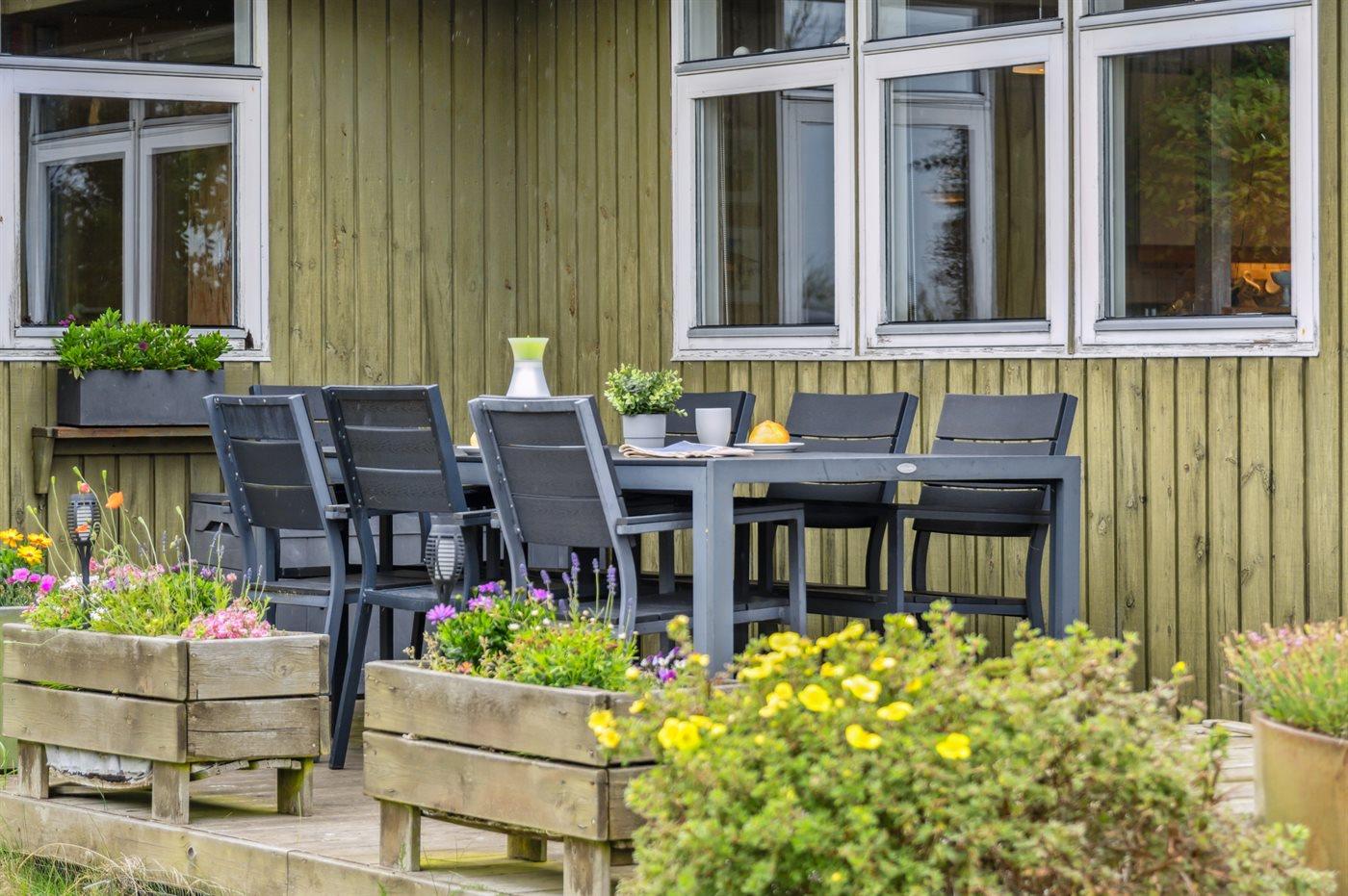 Ferieboligen er beliggende på en 680 m² stor havegrund. Grunden er indhegnet. Der er 50 m til havet. Nærmeste forretning er beliggende i en afstand af 3000 m. Til ferieboligen hører åbent terrasseareal. Parkering ved ferieboligen.