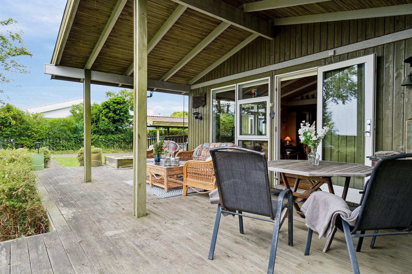 Et skønt beliggende sommerhus i 1. række og med næsten direkte adgang til stranden, som kun ligger 50 meter fra sommerhuset. Det er kun Kystvejen som ligger imellen Stranden og grunden. Stranden er børnevenlig og består af fint hvidt sand, så her er der gode muligheder for at tilbringe mange timer med badning, hygge og leg, hvis vejret tillader det.