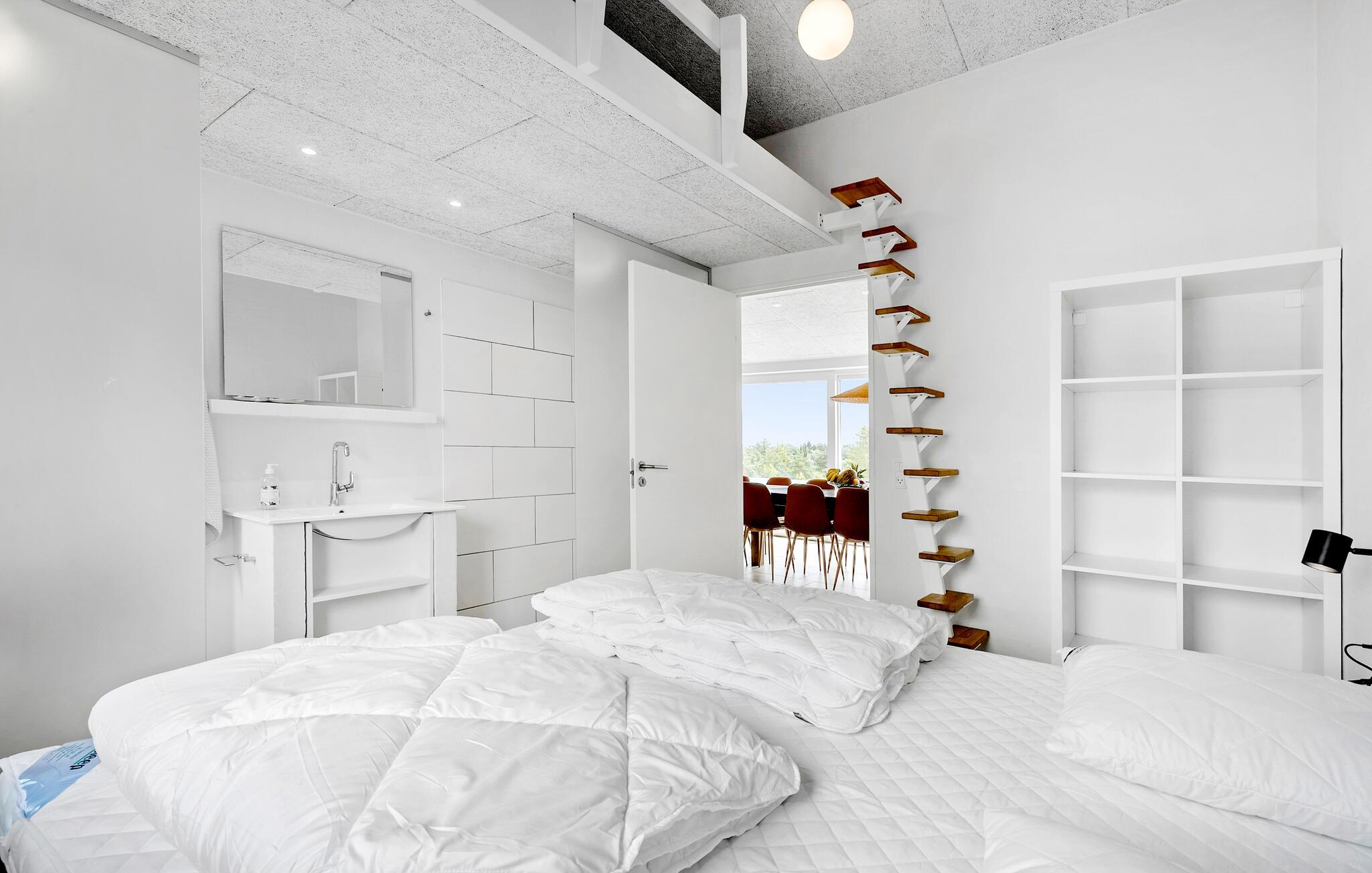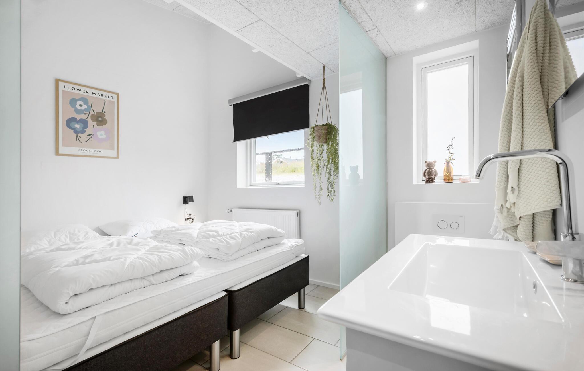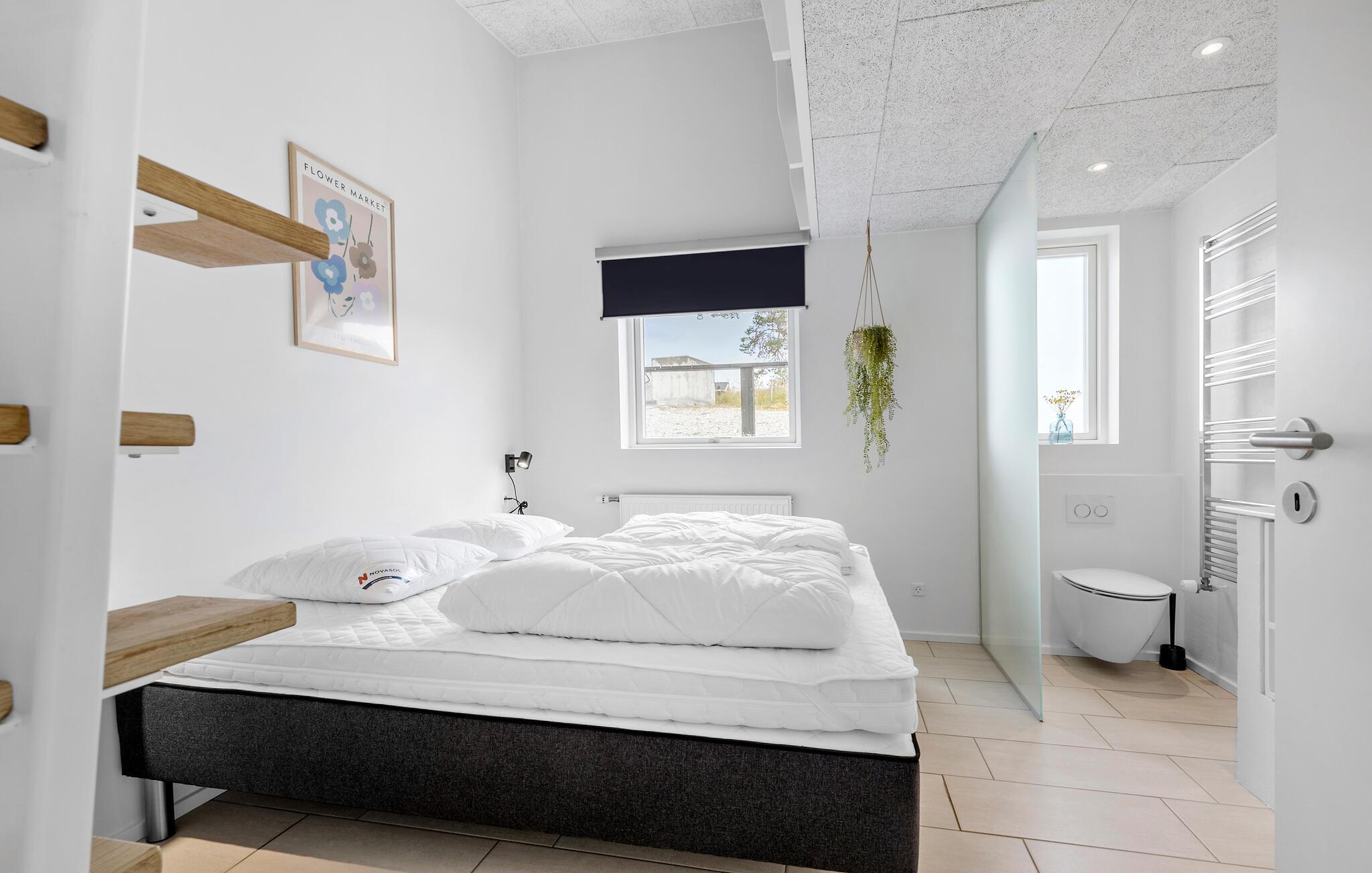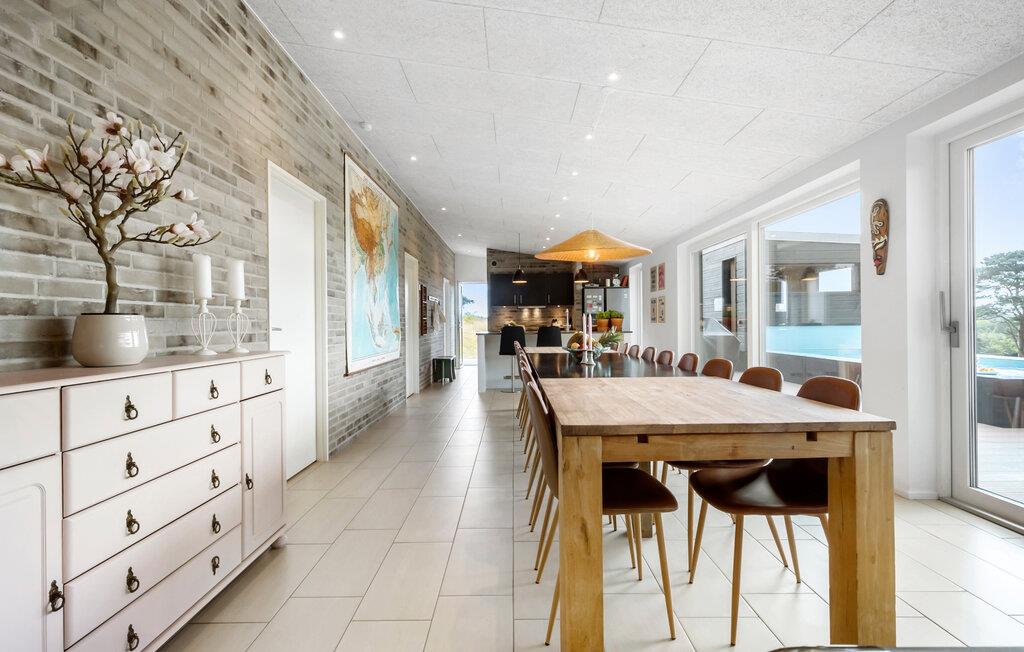 Jeres luksuriøst indrettede hus ved Egsmark Strand, der har plads til op til tre familier, byder på alt, hvad I behøver for et vidunderligt ferieophold. Glæd jer over den moderne indretning og den hyggelige atmosfære. Start dagen med en lækker morgenmad, som I kan nyde ved et af de lange spiseborde, enten på den overdækkede terrasse eller i den hyggelige opholdsstue. Derefter kan I slappe af på den rummelige sofa, se en film og planlægge dagens aktiviteter. En dejlig detalje ved huset er, at alle soveværelser har eget toilet og bruser.