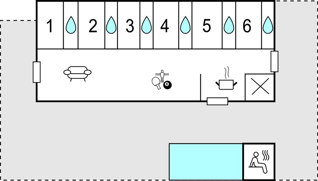 Udendørs kan I nyde en tur i saunaen og køle jer ned igen under udendørsbruseren. Derefter er det måske blevet tid til en dukkert i den dejlige pool, som året rundt er opvarmet til 38 grader. De mange liggestole byder på nogle rolige timer ved poolen. Der er også rig mulighed for underholdning. Afhold spændende turneringer i bordfodbold eller poolbillard.