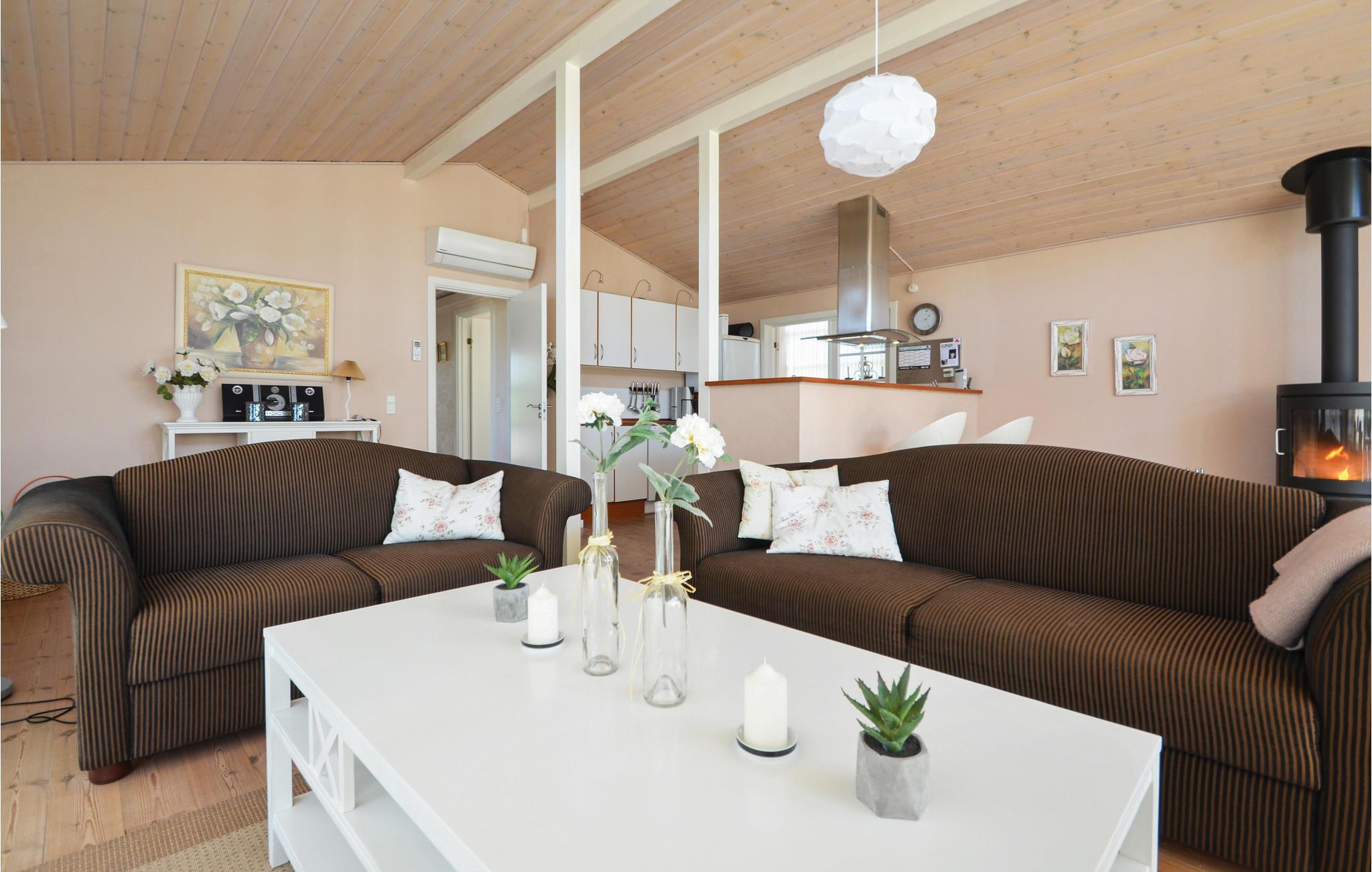 Dette feriehus er utrolig dejligt og yderst velholdt, og huset har en god indretning med stilfuld møblering. Der er her tale om et lyst og spændende hus at holde ferie i. Der er udgang fra stuen til det store terrasseareal, som strækker sig det meste af vejen rundt om huset, så der er altid mulighed for at finde læ og nyde solen. Der er en dejlig velholdt grund med græsplæne. Området er beliggende med kort køreafstand til Ebeltoft, og I kan nyde turen med stil langs vandet enten på gåben eller på cykel.