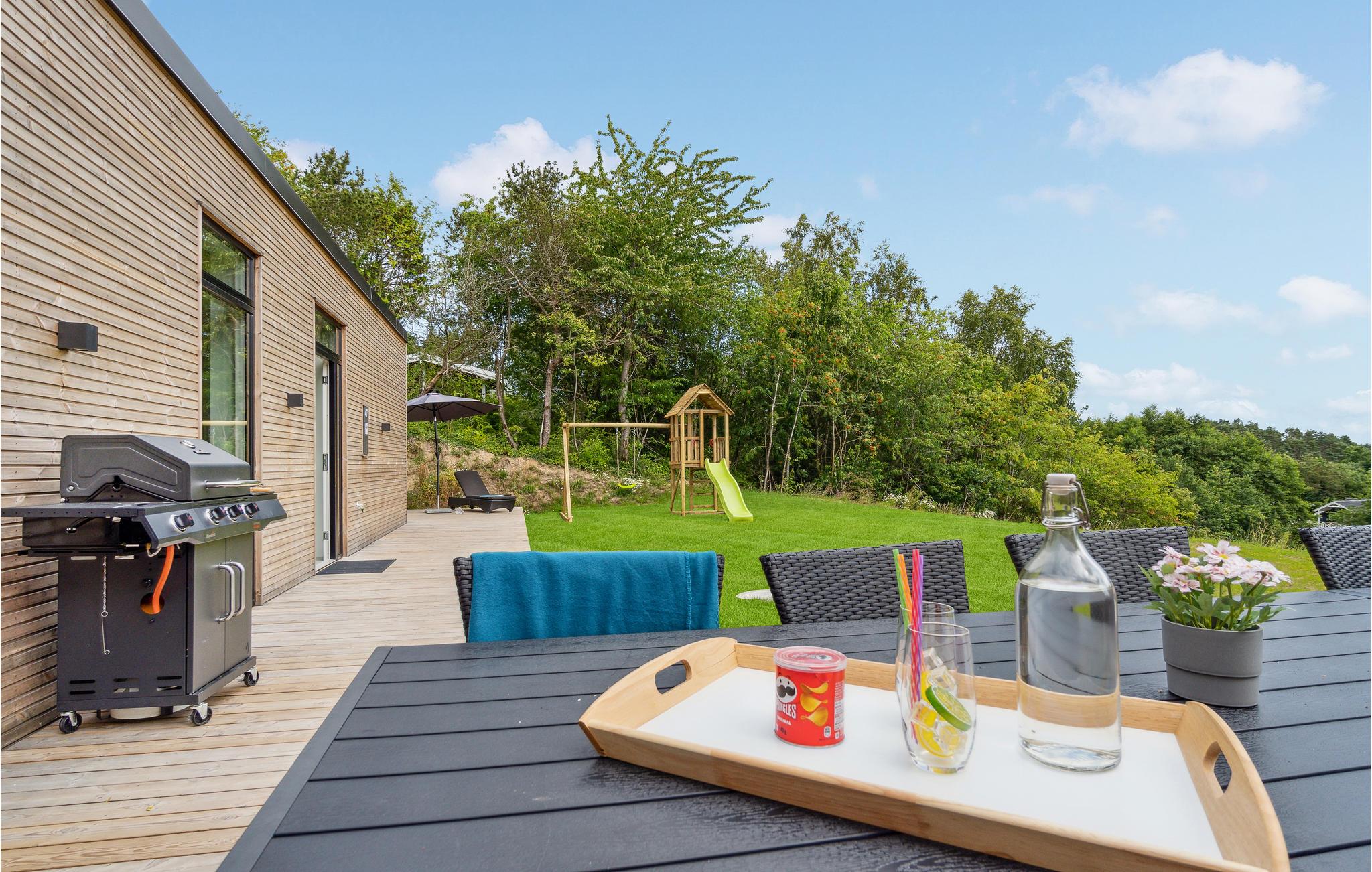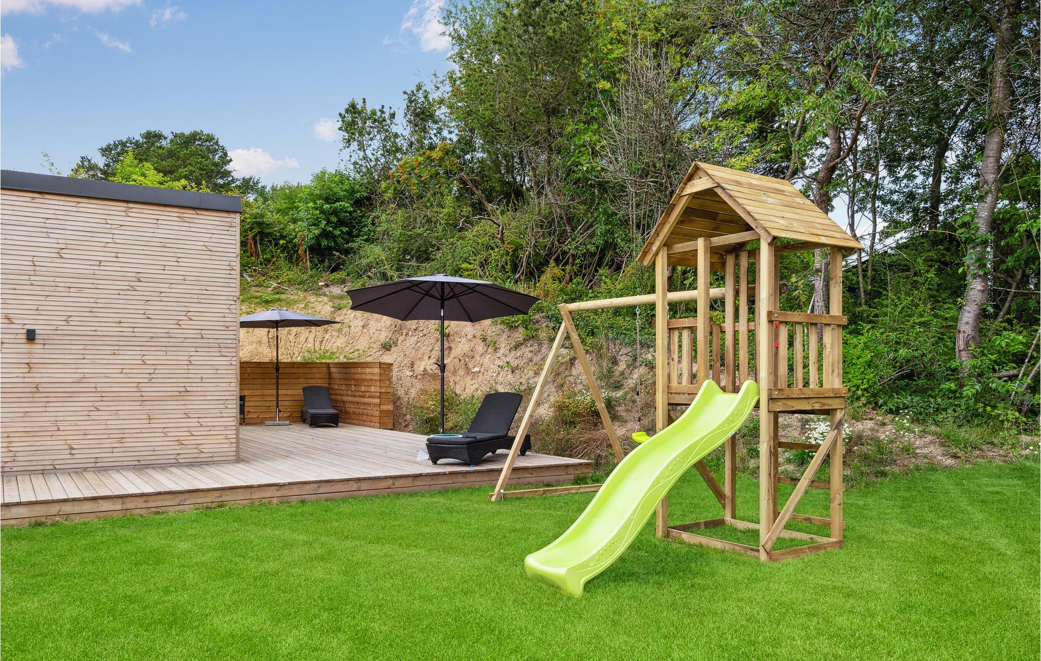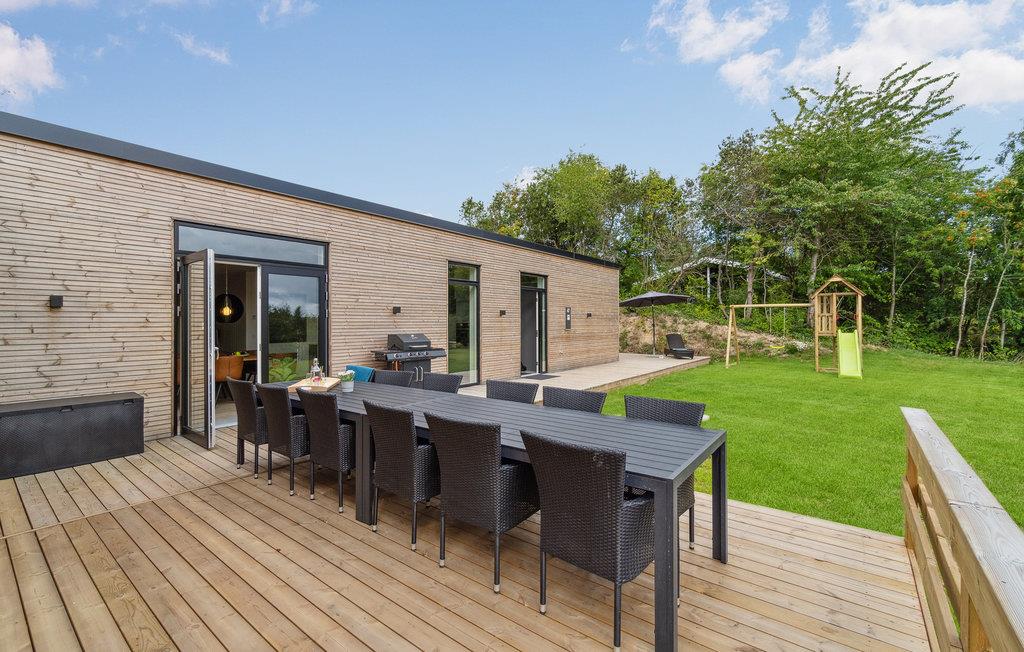 Sommerdagene tilbringes på husets skønne terrasse, mens børnene kan bygge flotte figurer i sandkassen eller svinge sig højt på gyngerne.