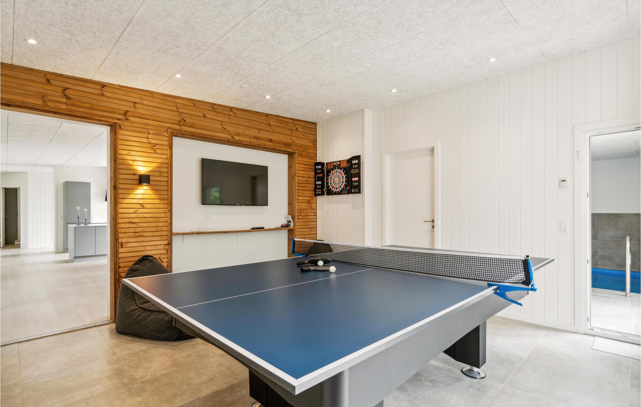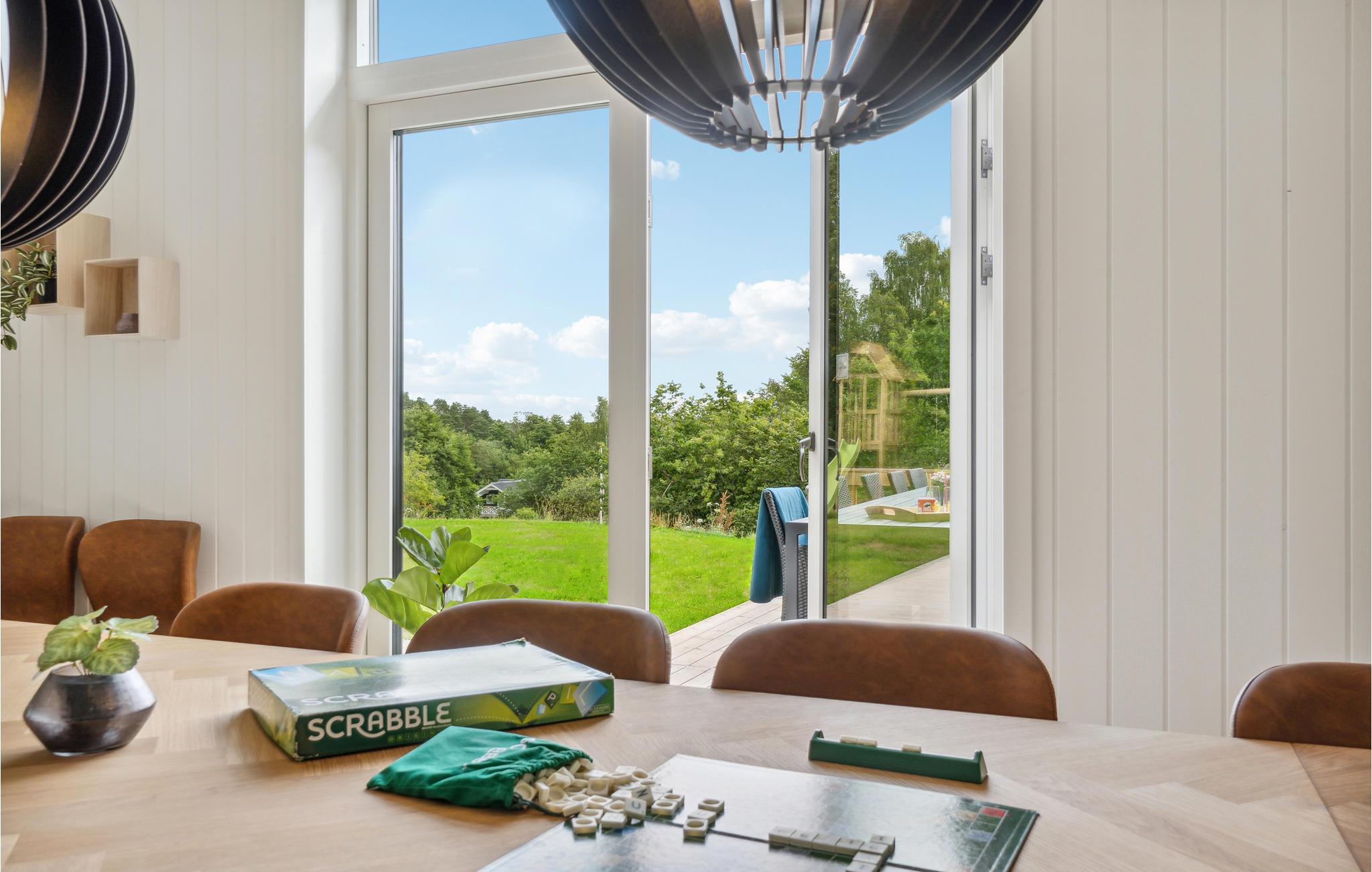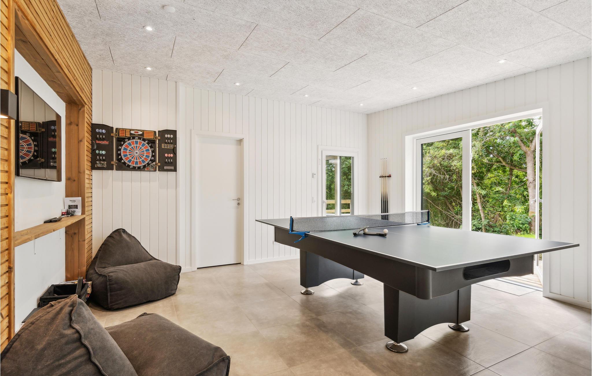 Velkommen til Djursland og et dejligt sommerhus, hvor der er kælet for alle detaljer. Nogle få minutters gåtur fra Egsmark Strand ligger den solrige grund med et stort hus, der kan rumme to familier og har et stort udvalg af aktiviteter, så ingen kommer til at kede sig. Snup et spil dart eller bordtennis, hop en tur i poolen med børnene eller find sammen om et sjovt brætspil i stuen. I køkkenet er der gode rammer til at gøre madlavningen til et hyggeprojekt og senere kan I give jer god tid til at nyde retterne rundt om spisebordet, hvor der er udsigt til den grønne have.
