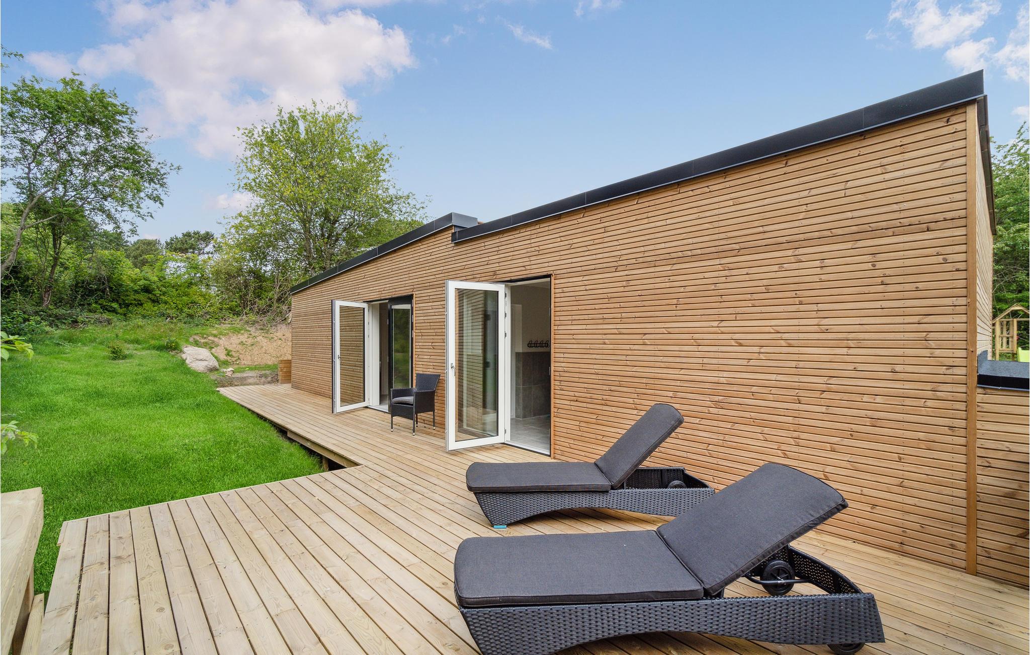Moderne feriehus ved Egsmark Strand med pool, aktiviteter og nærhed til natur og vand.