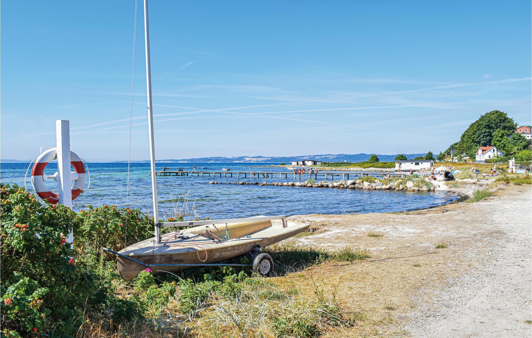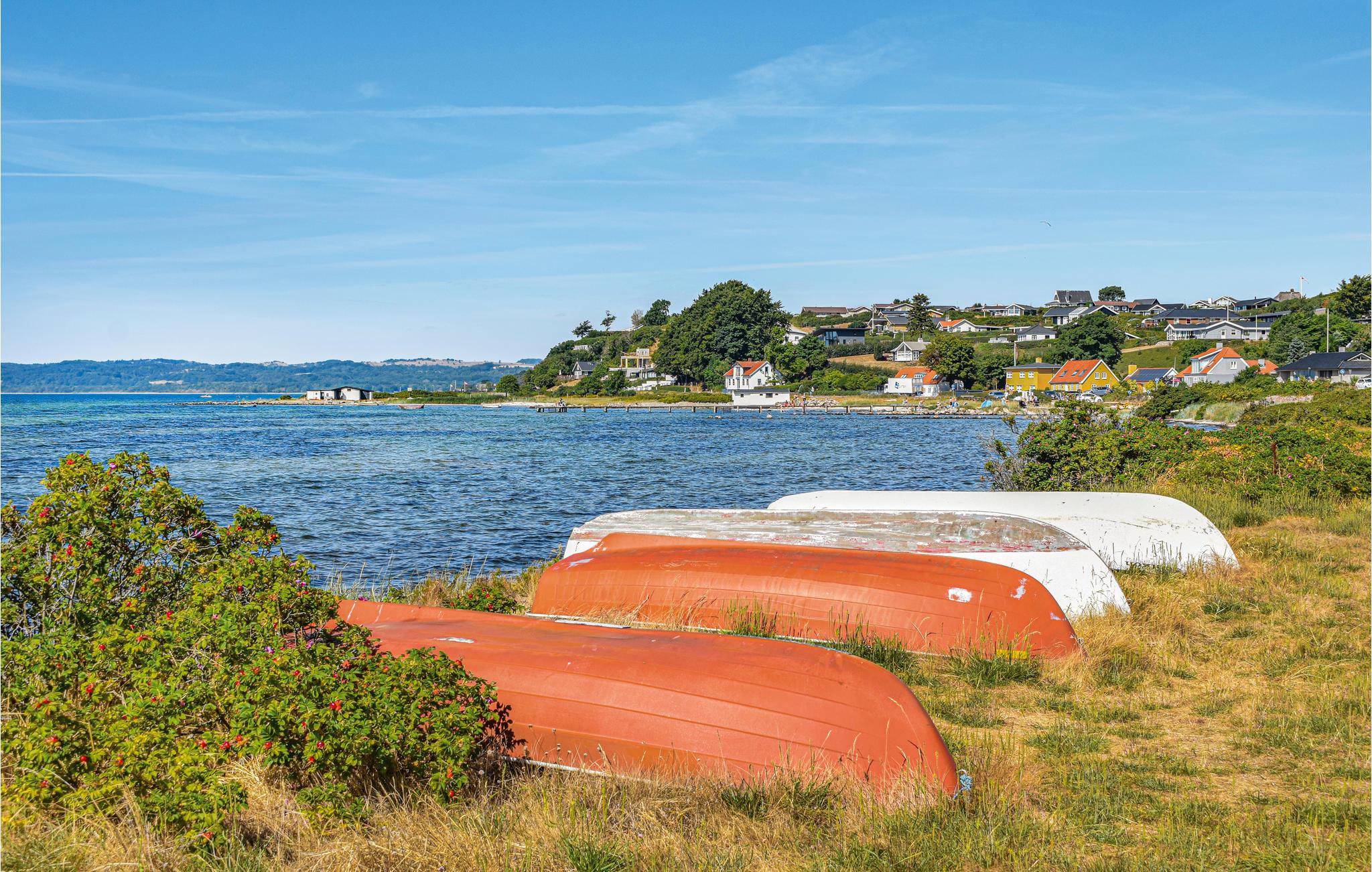 Huset har en dejlig beliggenhed i på en rolig sommerhusvej. I bor kun få minutters gang fra den børnevenlige strand, hvor der venter mange daglige afstikkere til et frisk dyp og solbadning. I har kun en kort køretur til Ebeltoft, der er indbegrebet af en malerisk, gammel købstad med brostensgader, specialbutikker og gallerier. Byen har også et godt udvalg af cafeer, restauranter og attraktioner, herunder Fregatten Jylland, som uden tvivl vil være en oplevelse for både børn og voksne.