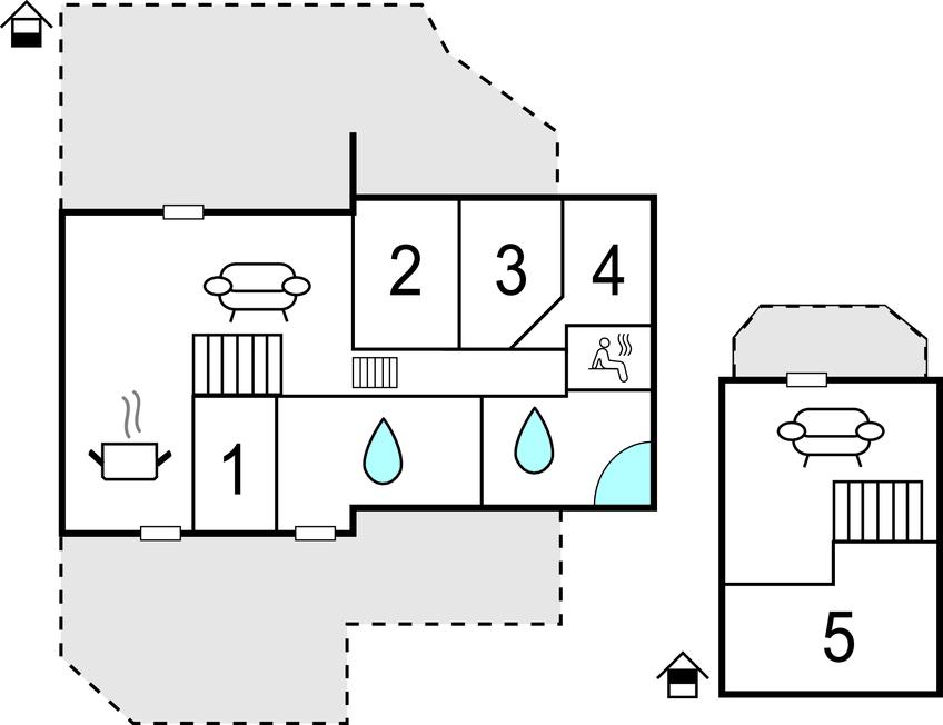 Soveværelse 6m2 (nr. 5) - 1 Soveplads. (Enkeltseng(e)). 2 Sovepladser. (Dobbeltseng(e)).
