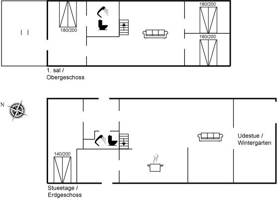 Der er i alt 4 soveværelser. Sovepladserne fordeler sig på: 8 sovepladser i dobbeltsenge. Derudover er der 1 stk. barneseng.