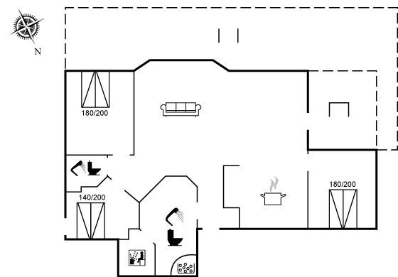 Sommerhuset egner sig til 8 personer samt 1 barn op til 3 år. Ferieboligen er på 115 m² og er bygget i 2006. Det er tilladt at medbringe 1 husdyr. Ferieboligen er udstyret med energibesparende varmepumpe. Hele ferieboligen har gulvvarme. Ferieboligen har vaskemaskine. Frysekapacitet på 120 liter. Der er desuden brændeovn. Til de små er der 1 stk. barnestol.