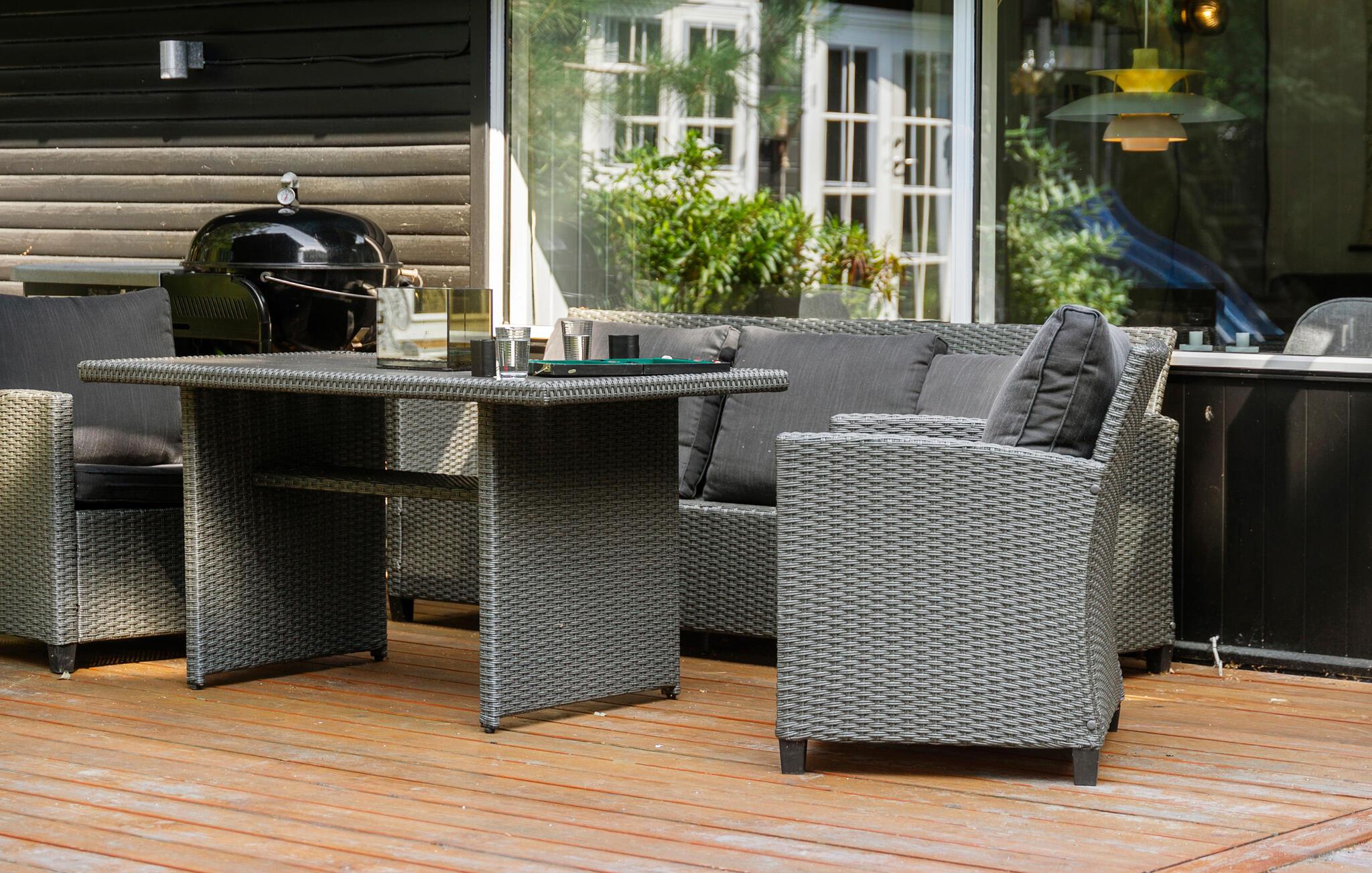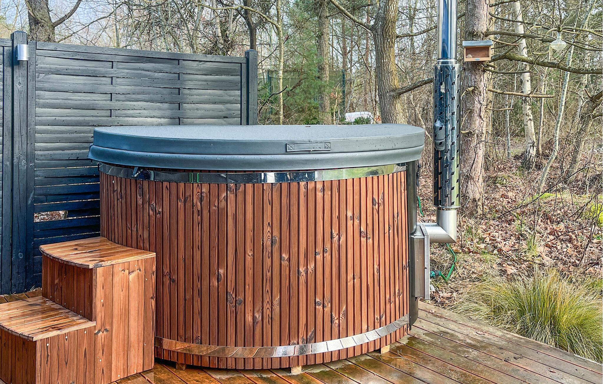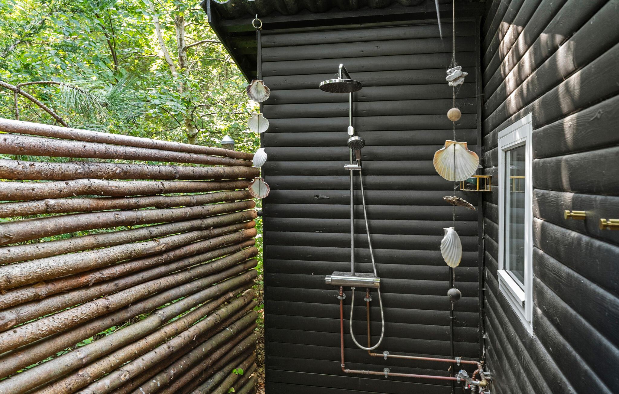 Tilbring dagen på den rummelige træterrasse. Slap af i liggestolene eller sæt jer i skyggen under parasollen med en bog. Afslut aftenen i vildmarksbadet, mens I ser ud over den beplantede have og det separate lille havehus. Der er legeplads med rutsjebane til børn, bålplads i skoven bag huset for hele familien og shelterhytte til hyggelige timer udendørs.