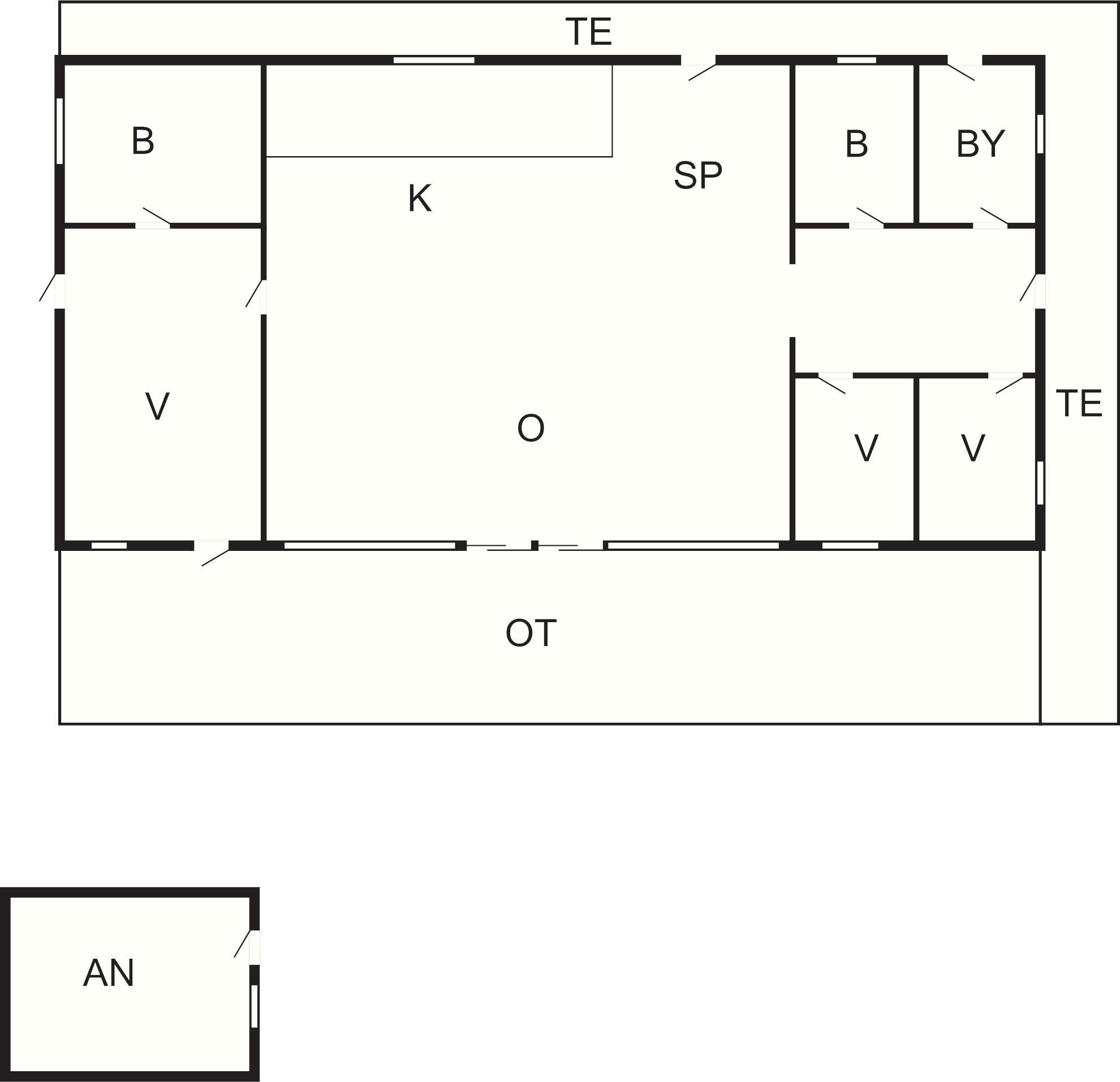 Stuen giver et varmt og afslappende omdrejningspunkt for familielivet, med direkte adgang til en charmerende hems (oplægninger) gemt under taget. Denne hems er udstyret med et tv og en spillekonsol, hvilket gør det til et yndet sted for både børn og voksne. Lige ved siden af ??hovedhuset tilbyder et separat anneks ekstra fleksibilitet til større grupper eller familier. Den er indrettet med to dobbelte sovesofaer og har også et ekstra køleskab med fryser, hvilket gør det særligt praktisk til længere ophold.