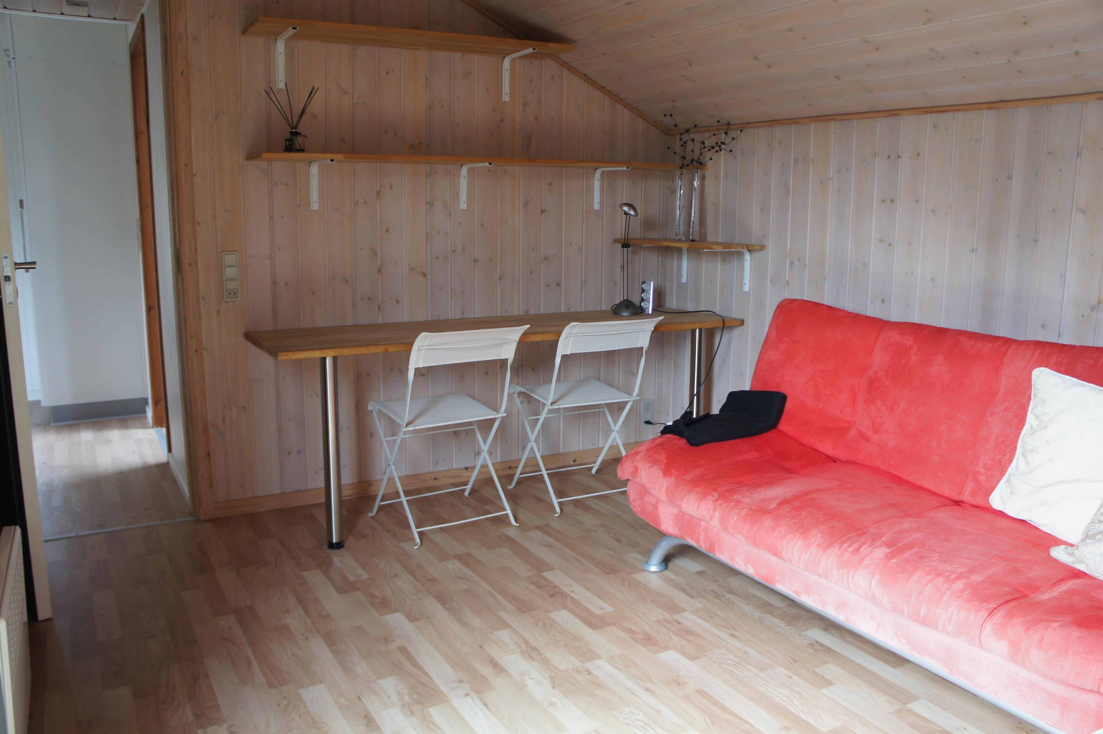 3: Sovesofa, PC bord/arbejdsbord. Der er gennemgang igennem dette værelse til det store værelse.